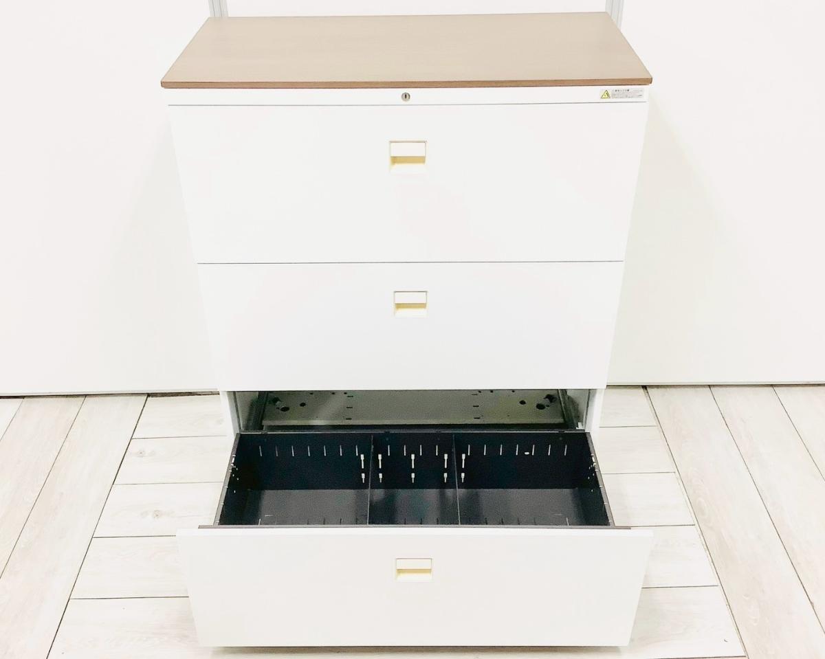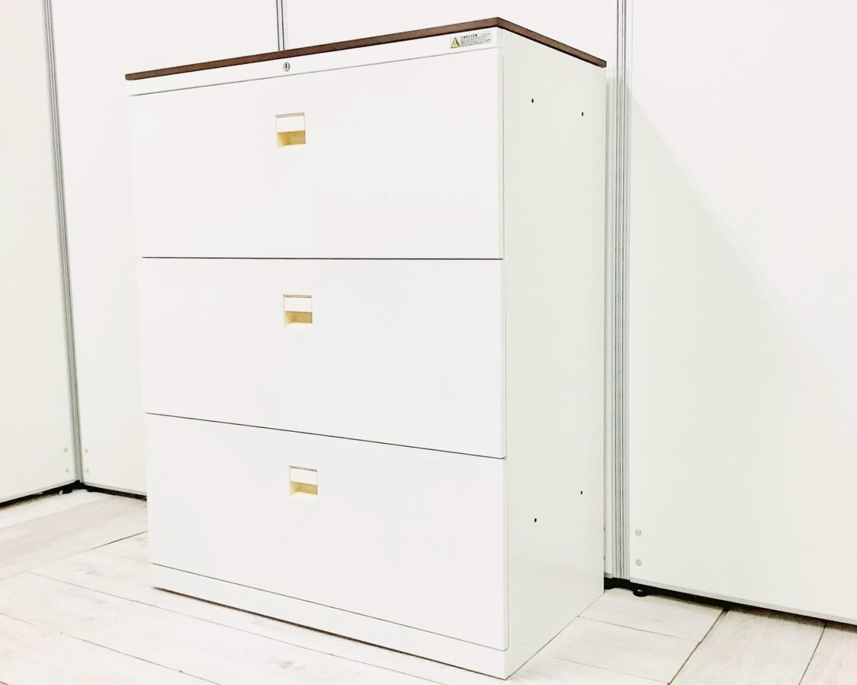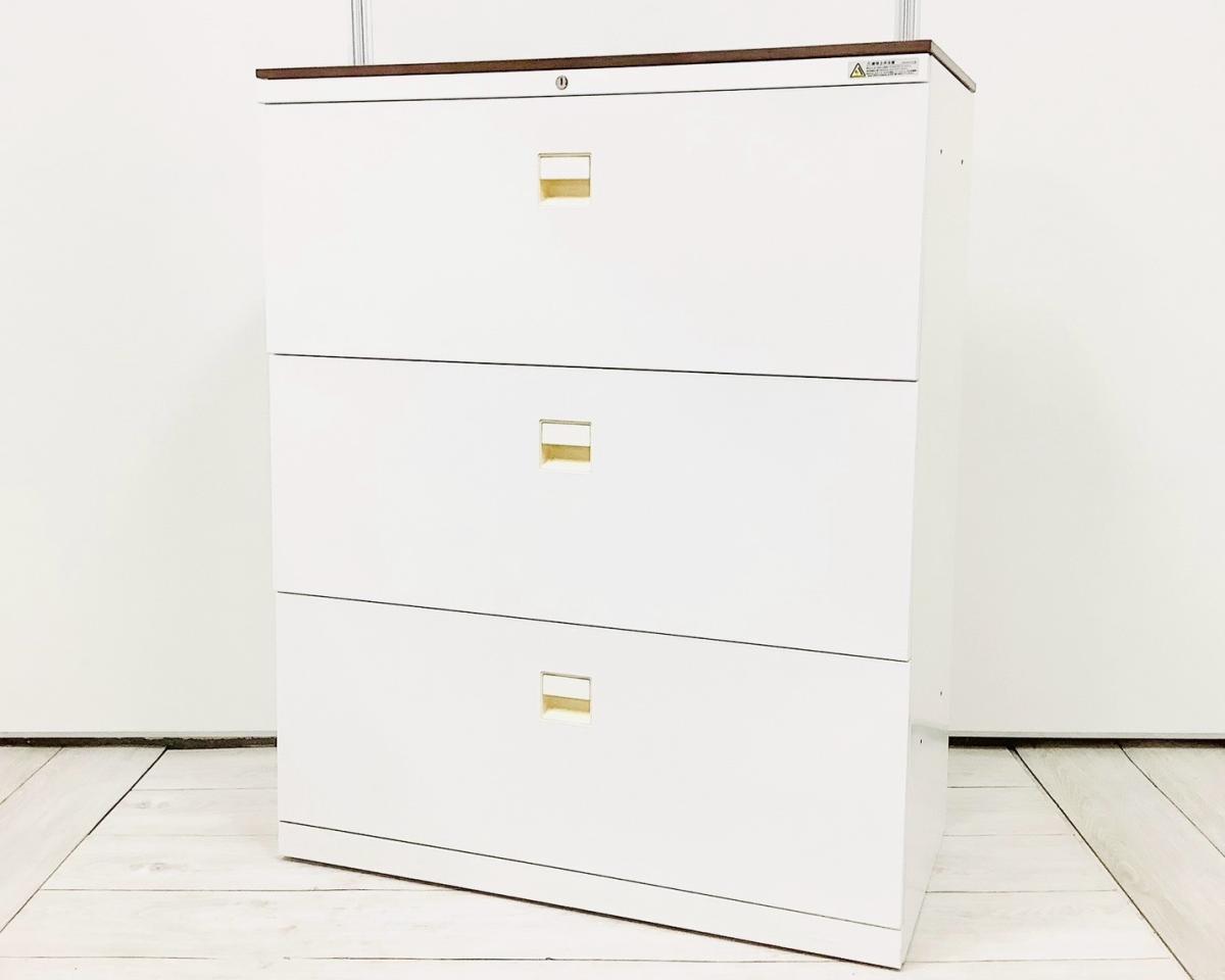 【オフィス書類をスッキリ整理!】■オカムラ製 3段ラテラル書庫 ホワイト天板付き ■ファイル収納にオススメ!引出し型キャビネット!【在庫入替セール品】