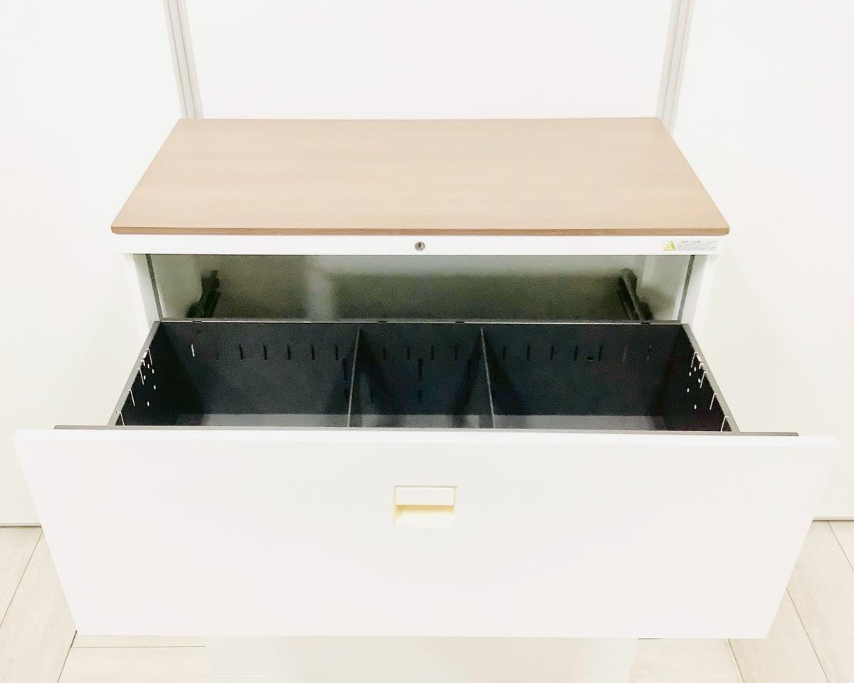 【オフィス書類をスッキリ整理!高品質で使いやすい3段引き出しキャビネット!】■オカムラ(okamura)製 SAデュオライン 3段ラテラル書庫 ローキャビネット ■色:ホワイト ■シリンダー錠 ※仕切り板無し