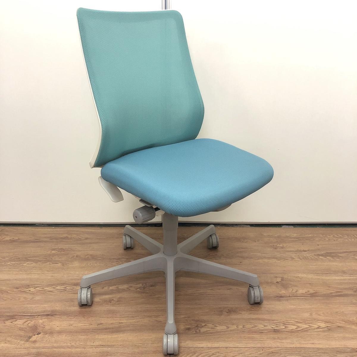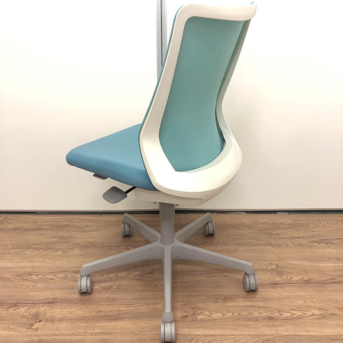 【腰まわりをしっかりホールド!長時間作業も快適フィット!】■オカムラ(okamura)製 フルーエントチェア(Fluent) ローバック 肘無し ■背面メッシュ ■セージブルー×ホワイトシェル〈岐阜・愛知・三重・静岡・福井〉