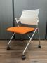 【定価約5万円】【使わない時は平行に重ねて収納!肘付きで長時間の会議も安心の座り心地】■コクヨ(KOKUYO)製 ピエガシリーズ(Piega) ネスティングチェア ミーティングチェア ■固定肘 ■背パッド無し/ブラック 座面:オレンジ ■キャスター付