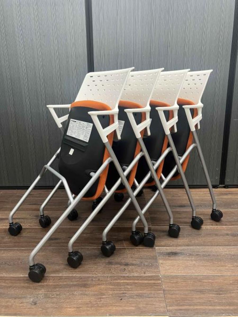 【在庫入替セール品】【定価約5万円】【肘付きで長時間の会議も安心の座り心地】【背もたれクッション無しモデル】■コクヨ ピエガ ネスティングチェア ■オレンジ