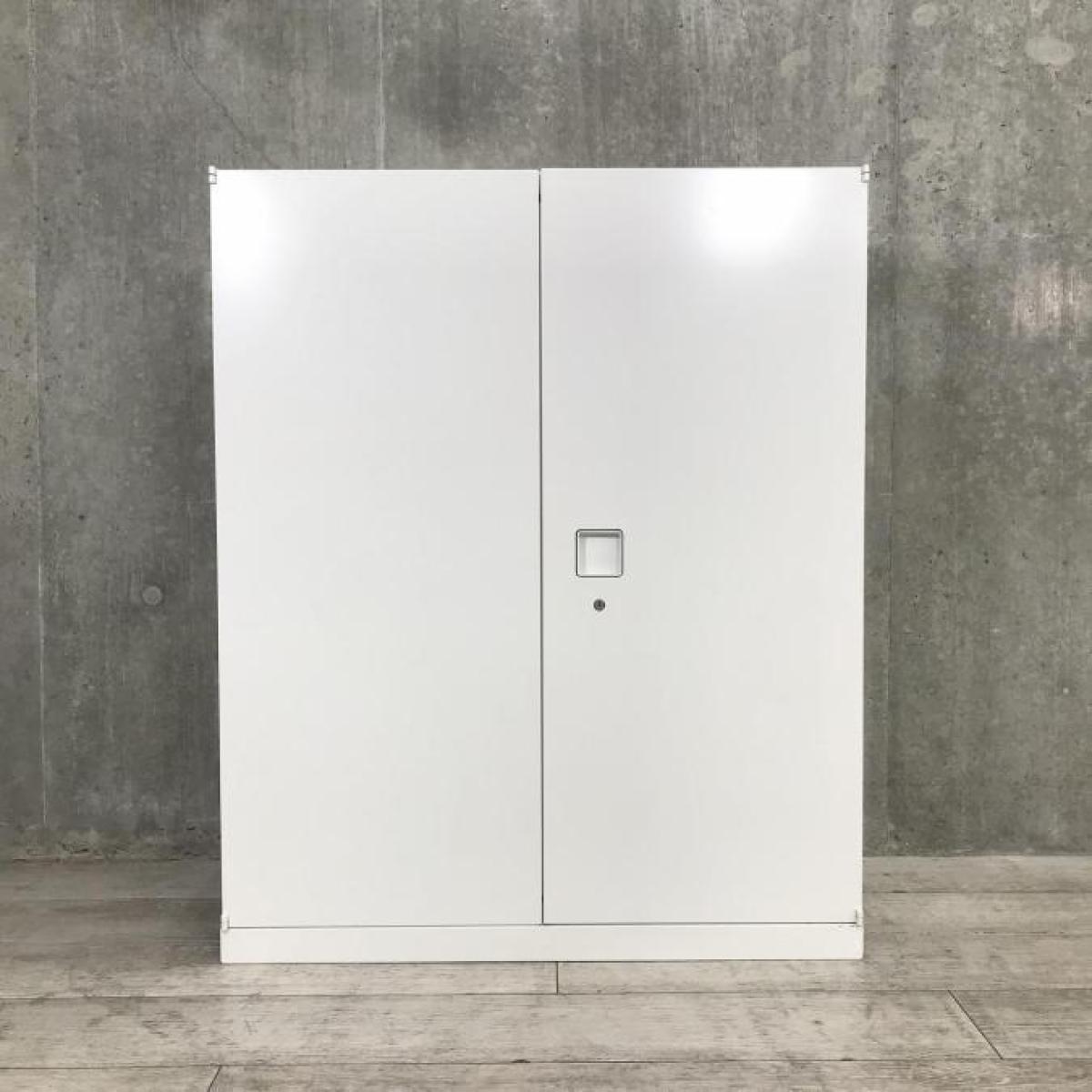 【オフィスの書類をスッキリ整理!取っ手がどの方向からでも開くマルチハンドルが人気!】■オカムラ(okamura)製 レクトラインシリーズ ローキャビネット 両開き書庫 H1250㎜ ■ホワイト ■シリンダー錠