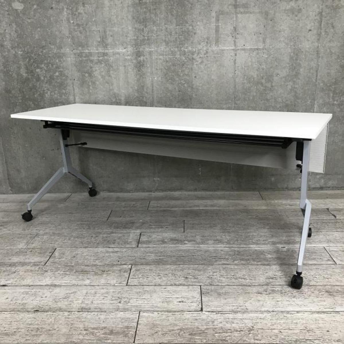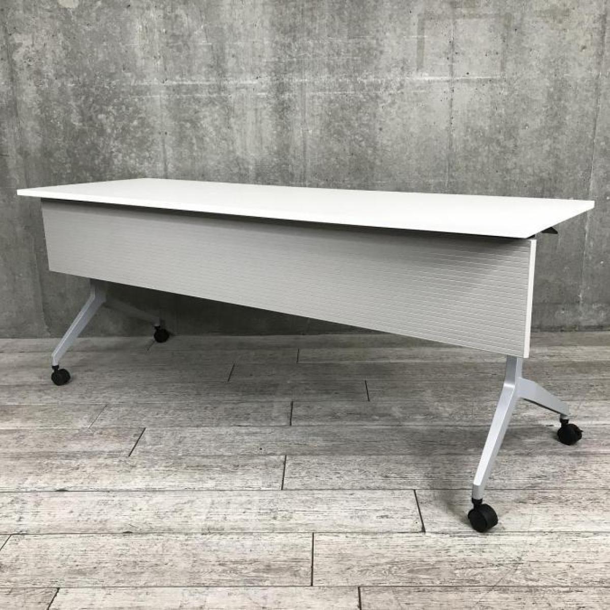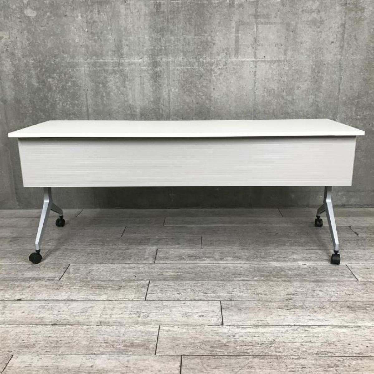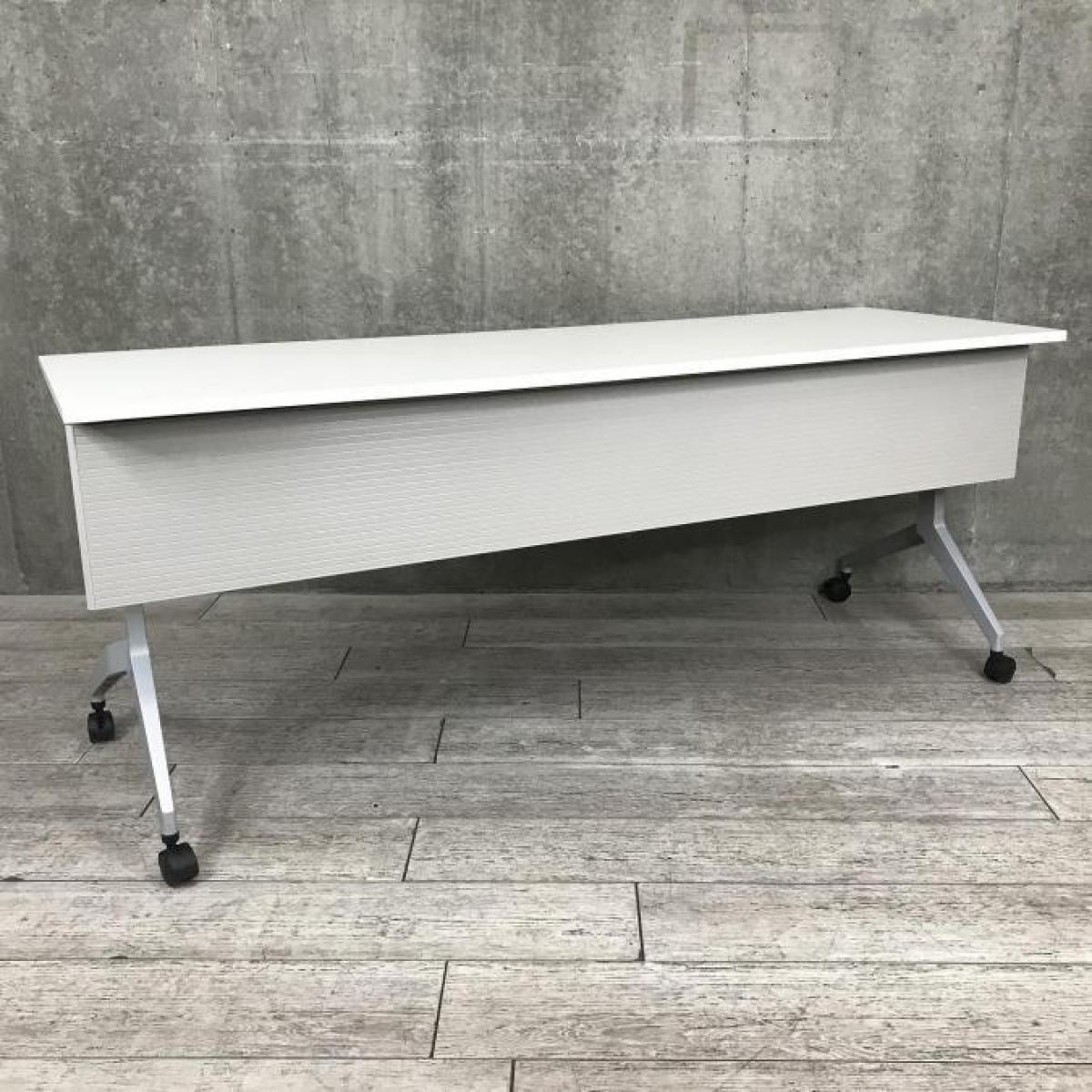 【在庫入れ替えSALE】【3人用での使用にオススメ】■内田洋行製 パラグラフ スタックテーブル 横幅1800mm奥行600mm ■ホワイト ■キャスター付 幕板付き【天板跳ね上げ式でコンパクトに収納】【キャスター付きで移動も楽々!】@tikusa-kamiya3在庫がある店舗一覧