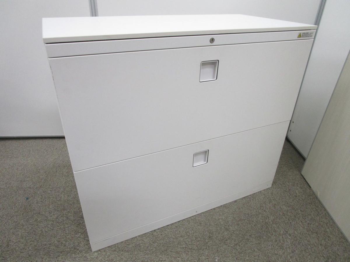 【在庫入れ替えSALE】【窓下の空間にもピッタリ!中古では中々出回らないナチュラル木目調天板付きの高さ780mmのキャビネット!】 ■オカムラ製 レクトライン 2段ラテラル ローキャビネット ■ホワイト ■ナチュラル木目調天板付き ■シリンダー錠- 岐阜店