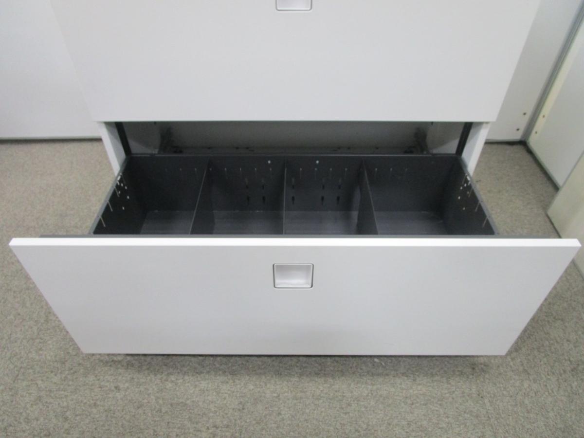 【オフィスの必需品!大容量の三段キャビネット!】■オカムラ(okamura)製 レクトラインシリーズ 3段ラテラル ローキャビネット ■天板/ベース付 ■シリンダー錠 ■ホワイト 【弊社使用欄:A01037187】