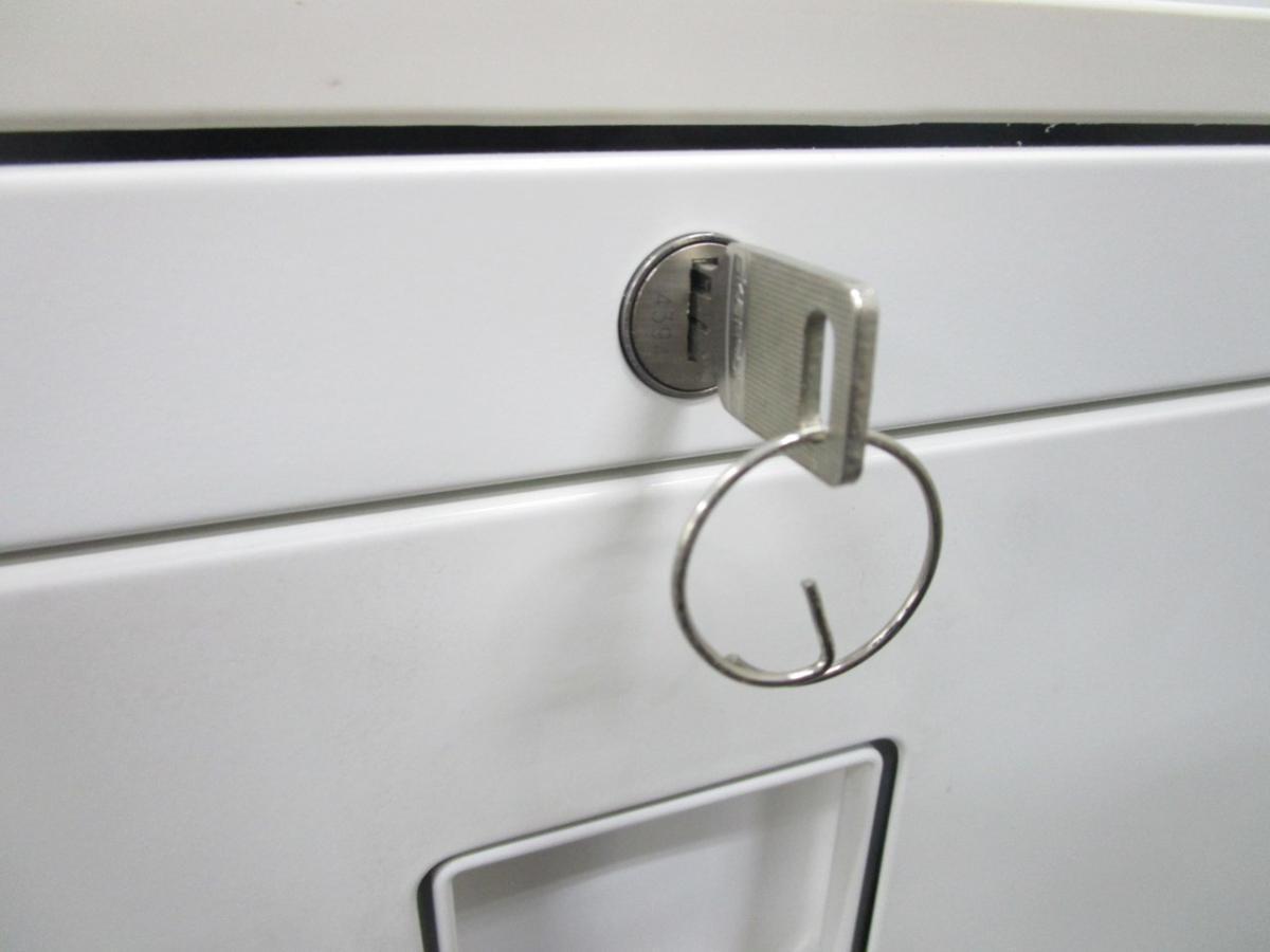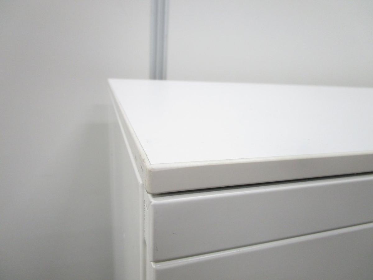 オカムラ レクトライン 3段ラテラル書庫 ホワイト天板 シリンダー錠 鍵付き ※取っ手部分に若干日焼けあり
