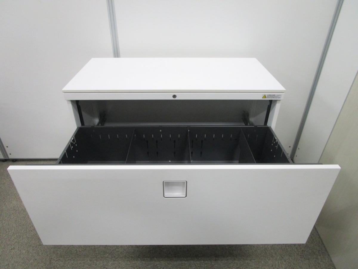 【オフィスの必需品!大容量の三段キャビネット!】■オカムラ(okamura)製 レクトラインシリーズ 3段ラテラル ローキャビネット ■天板/ベース付 ■シリンダー錠 ■ホワイト 【弊社使用欄:A01037187】