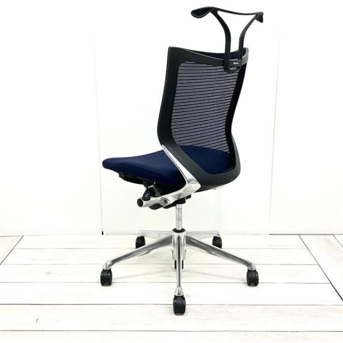 【ベストなポジションが得られる人間工学に基づいた先進設計!】不動の人気を誇る高級メッシュチェアが入荷! ■オカムラ/バロン/ダークブルー シルバー コートハンガー付き- 立川・八王子店