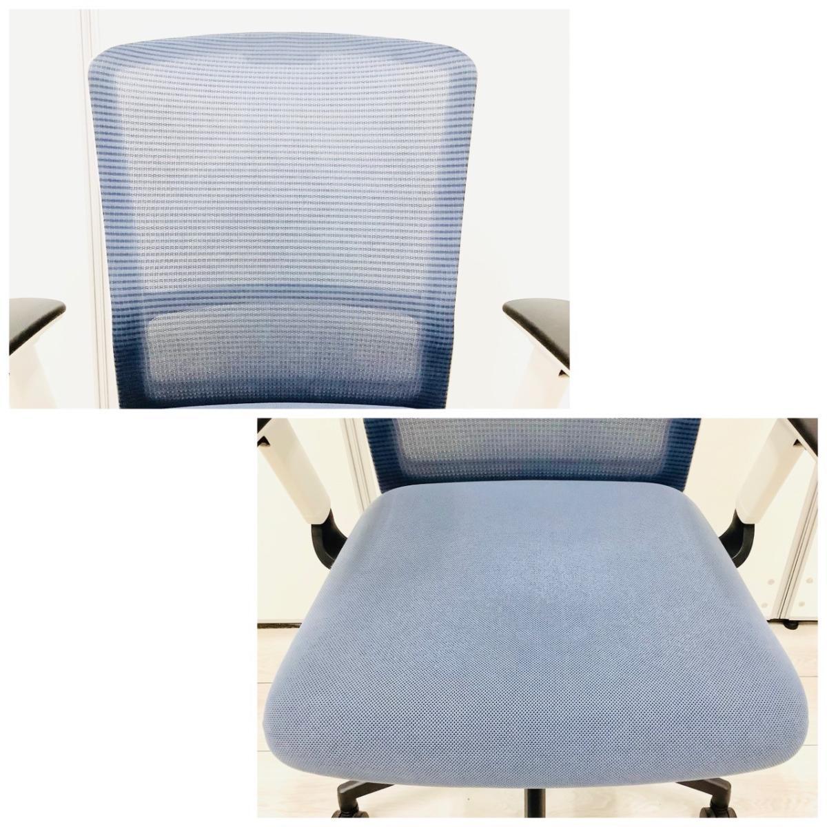 【西】【洗練されたデザインで大人気!ワンランク上の座り心地!】■ウチダ (UCHIDA)製 エルフィ (ELFIE) 肘無ミドルバック ■背面メッシュ ■アクアブルー×ブラックフレーム ■ハンガー付 *熊本市で、中古オフィス用品・オフィス家具をお探しなら「オフィスバスターズ熊本サテライト店」へ*※サテライトは商談スペースのみの為、在庫は福岡の在庫を掲載しております。商品につきましてはお電話にてお問い合わせください。