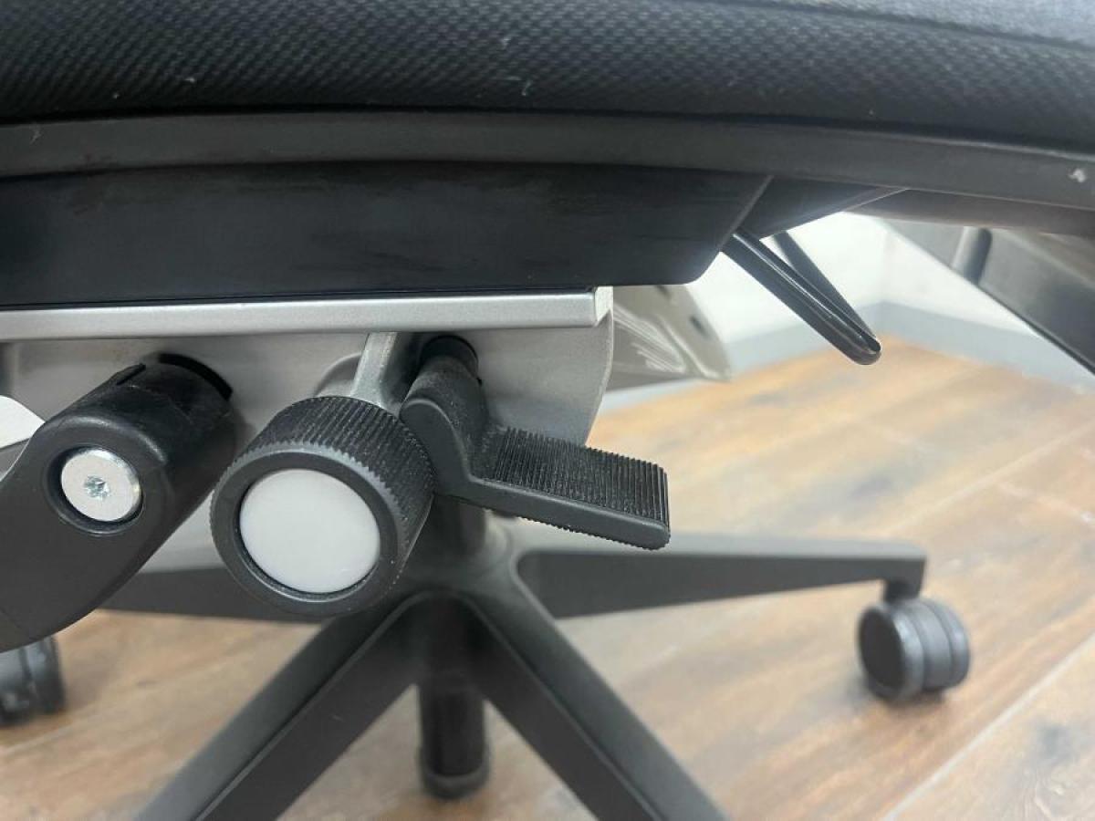 快適な座り心地に不可欠な調節機能である、上下昇降、座面の奥行き調整、リクライニングなどを備えており、操作もわかりやすく好評です。 特に、座面の奥行きは、座面下の左右に通った細いバーで調整でき、座ったままで軽やかに滑るように調整が可能です。 価格面では、新品では高めですが、中古は流通も多く、定価の3割前後の価格で高級チェアの座り心地を手に入れることができます!