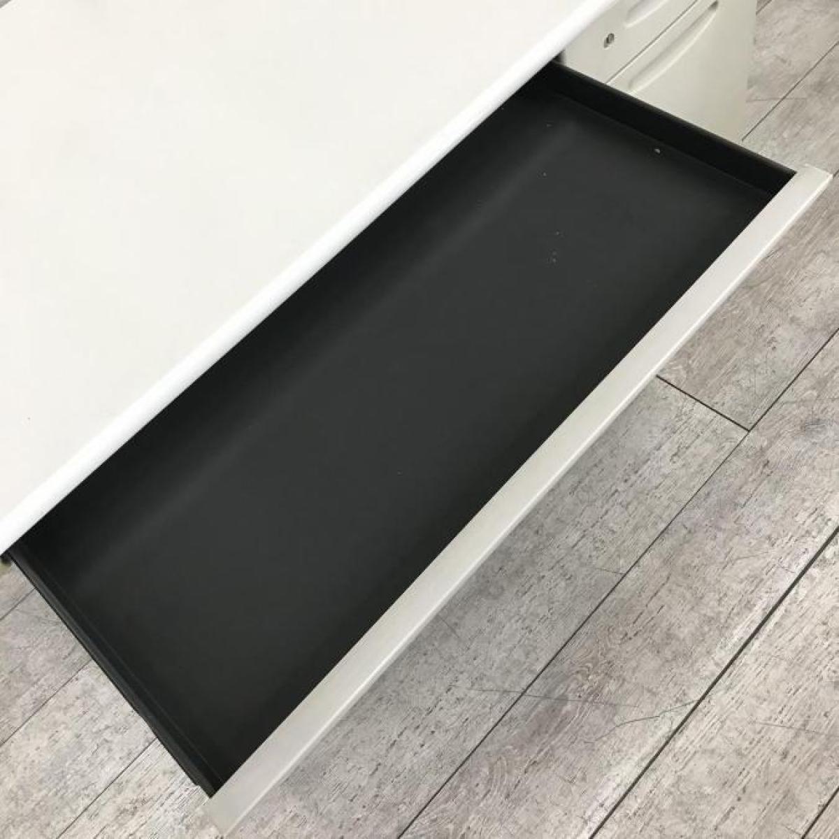 - 袖机のワゴンは、最下段がロング引出しになっており、従来より収納力120%アップ。