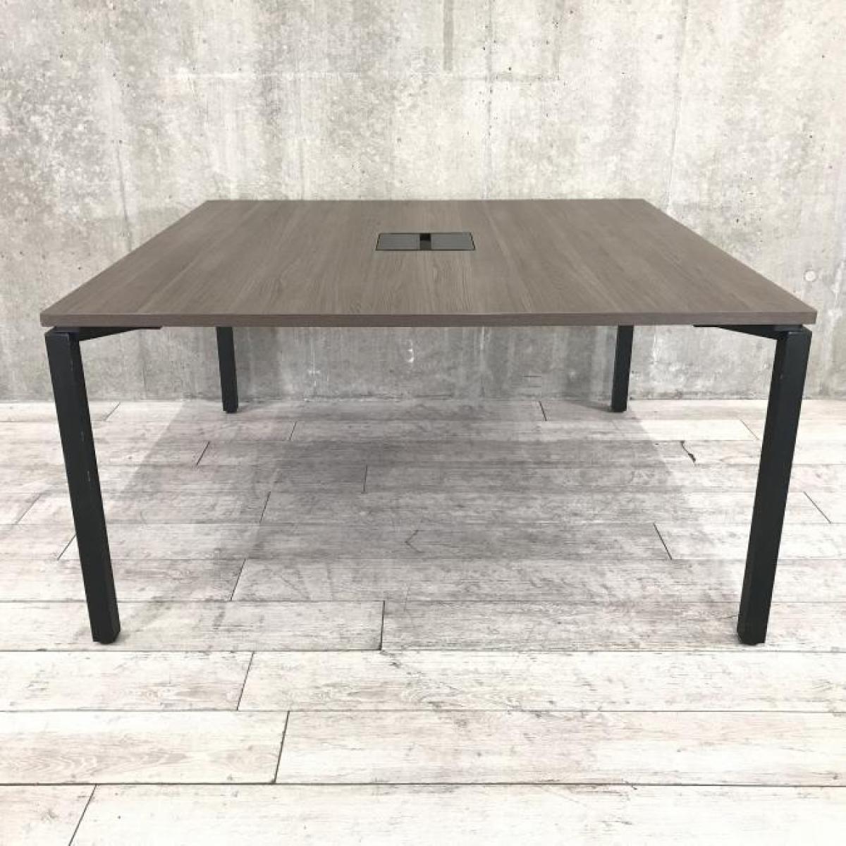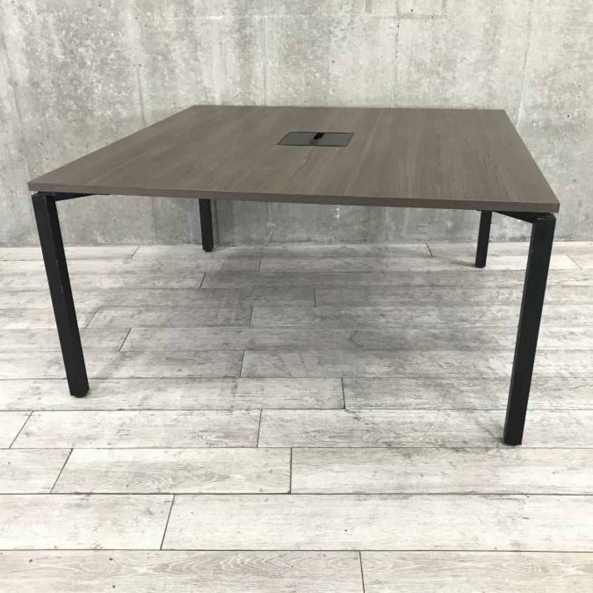 【スタイリッシュなミーティングテーブル!ワークデスクとしても使用可能!】 ■コクヨ製 ワークフィット (WORKFIT) ミーティングテーブル ■W1400mm ■配線ダクト付き ■木目ダーク天板×ブラック脚- 岐阜店