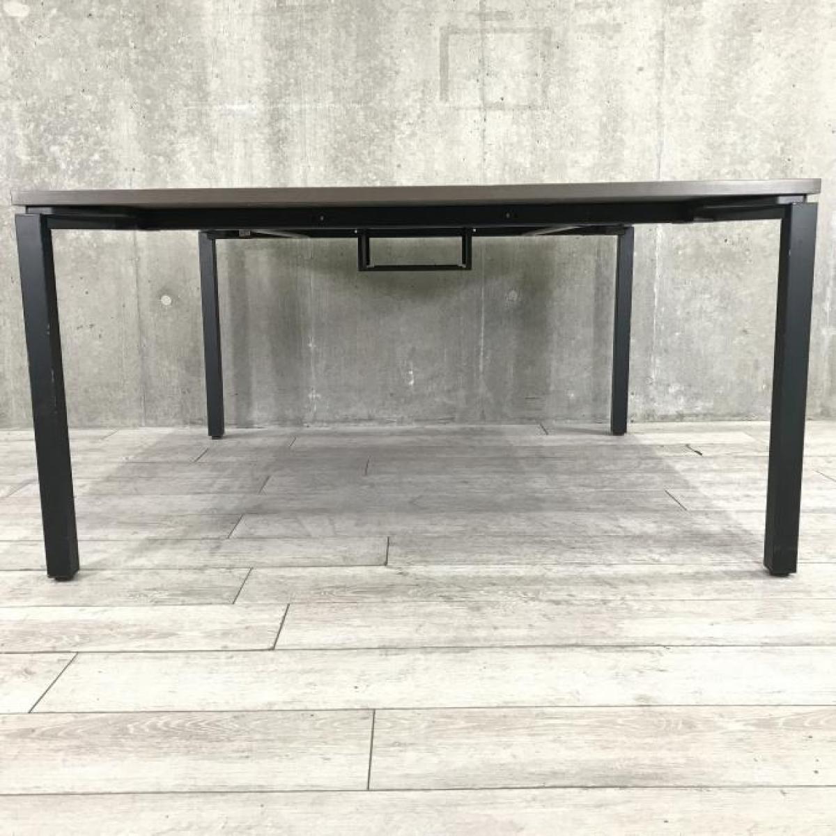 【スタイリッシュなミーティングテーブル!ワークデスクとしても使用可能!】 ■コクヨ製 ワークフィット (WORKFIT) ミーティングテーブル ■W1400mm ■配線ダクト付き ■木目ダーク天板×ブラック脚- 浜松サテライト