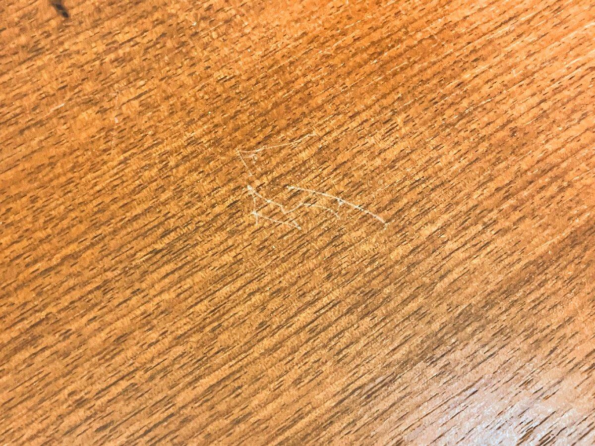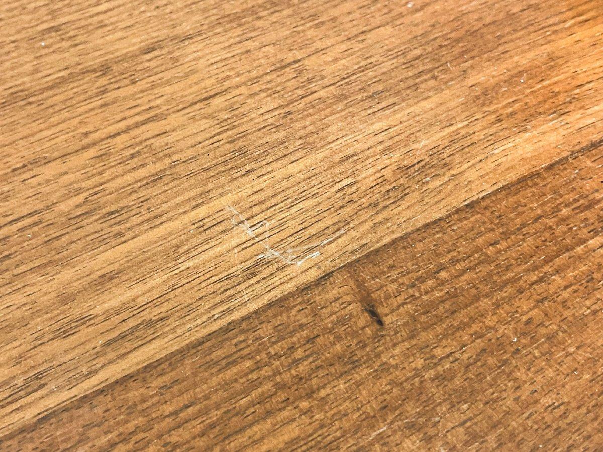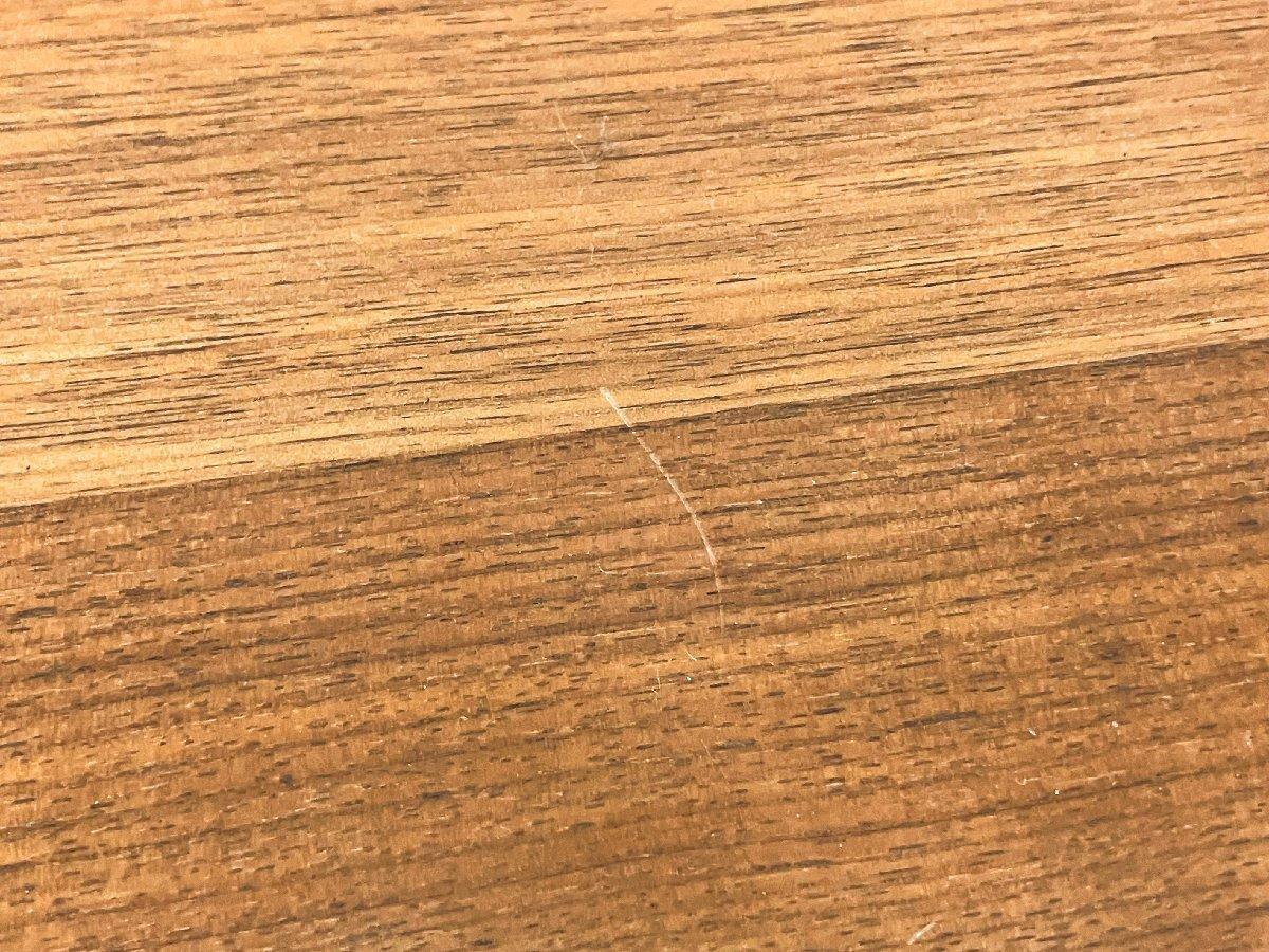 - 目立つ箇所あり傷・凹みが多数、深い傷・凹みが一部ある。(例、天板、幕板、棚板、サイド部分、脚部等にある。)