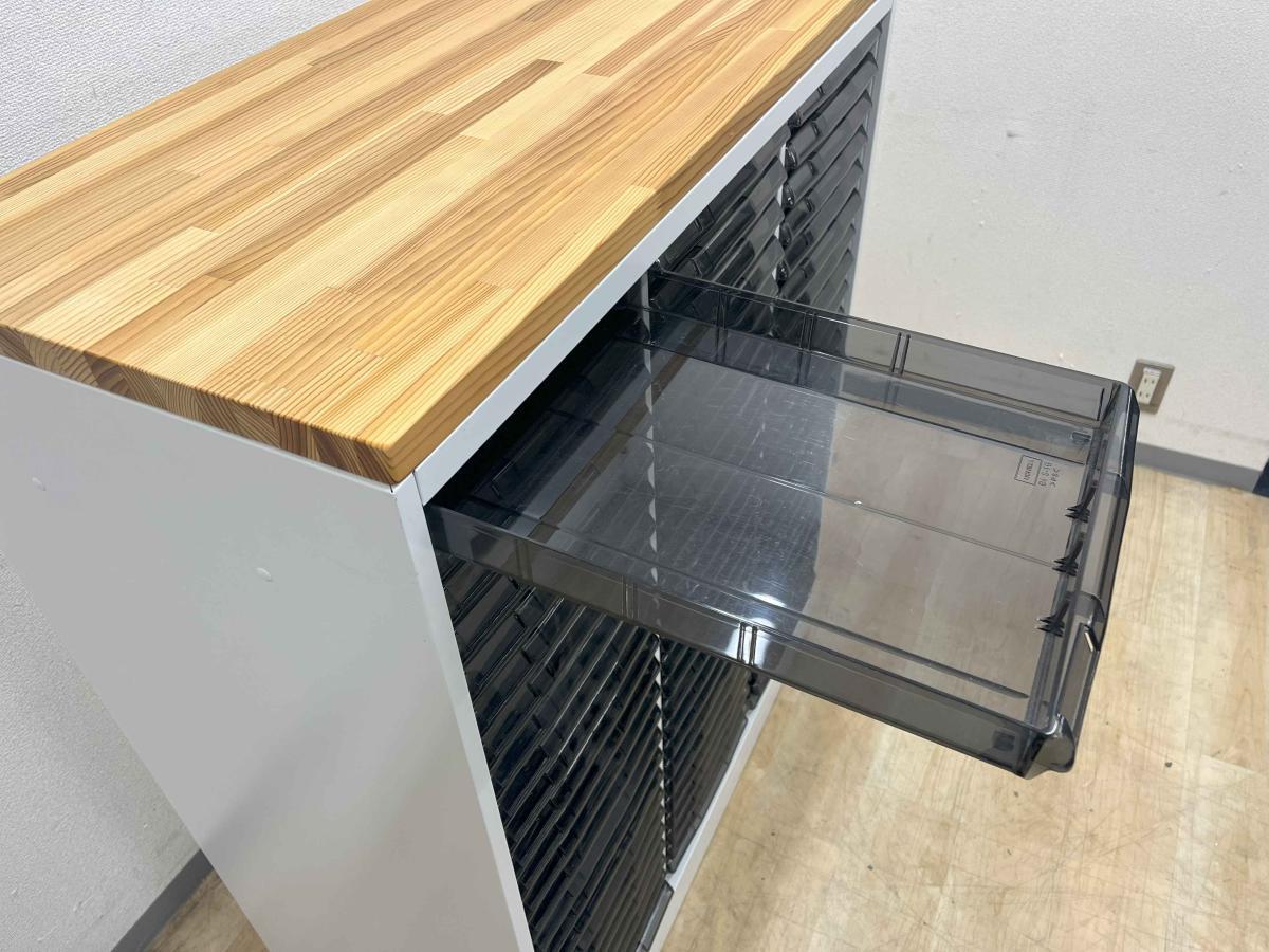 【希少なクリスタルキャビネット!細かい書類整理の仕分けに!】■ウチダ製 クリスタルトレー 浅型24×3列 ■本体ホワイト×ナチュラル天板〈岐阜・愛知・三重・静岡・福井〉- 在庫数