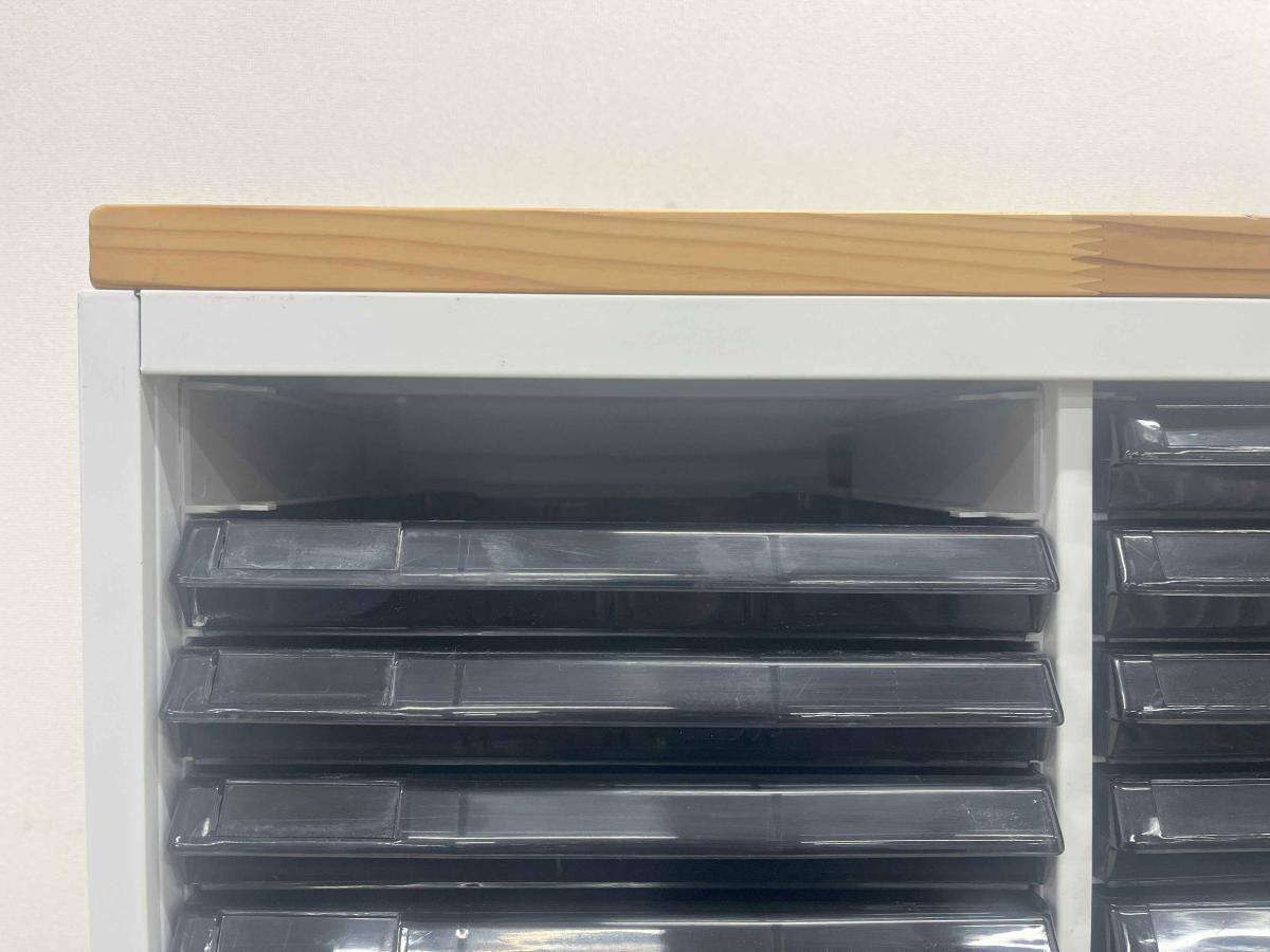 【在庫入れ替えSALE】【希少なクリスタルキャビネット!細かい書類整理の仕分けに!】■ウチダ製 クリスタルトレー 浅型24×3列 ■本体ホワイト×ナチュラル天板 ※一か所引出し無し〈岐阜・愛知・三重・静岡・福井〉- 岐阜店
