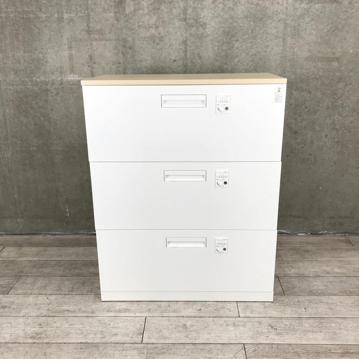 【ダイヤル錠タイプの3段引き出し型書庫!各段ごとでの施錠が可能な優れもの!】■コクヨ(KOKUYO) エディア(EDIA) 3段ラテラル ローキャビネット ■ホワイト 天板:木目ナチュラル ■ダイヤル錠 ※非常解除キーは別売りです〈岐阜・愛知・三重・静岡・福井〉サーキュラーバリューCO2削減量の算出について