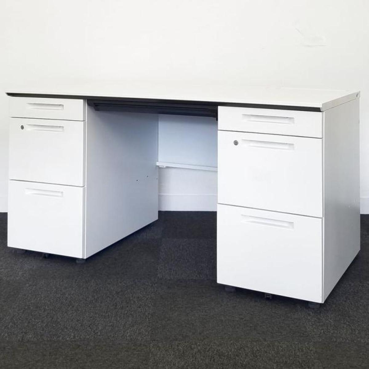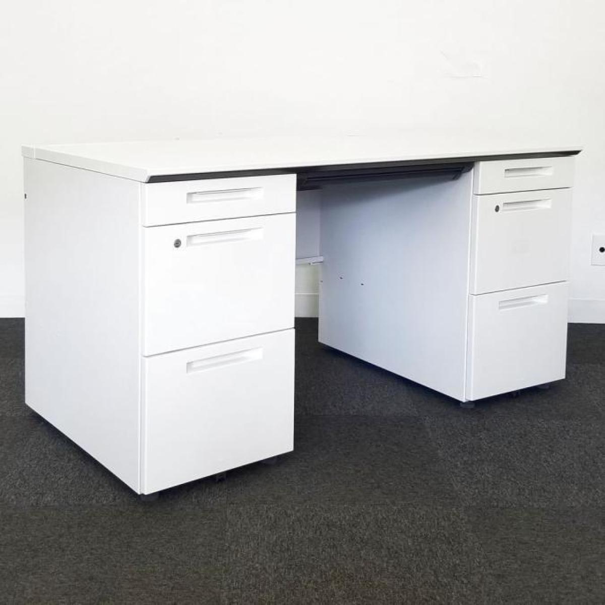 【T11】【商品入替のため、残り4台限り】コクヨ製 アイエス(IS) ホワイト 両袖 デスク W1400xD700xH720サイズ シリンダー 収納スペース充実! 机上をスッキリ整理! 幅広いワークスペースで上長席にもオススメ! W1400両袖机!!