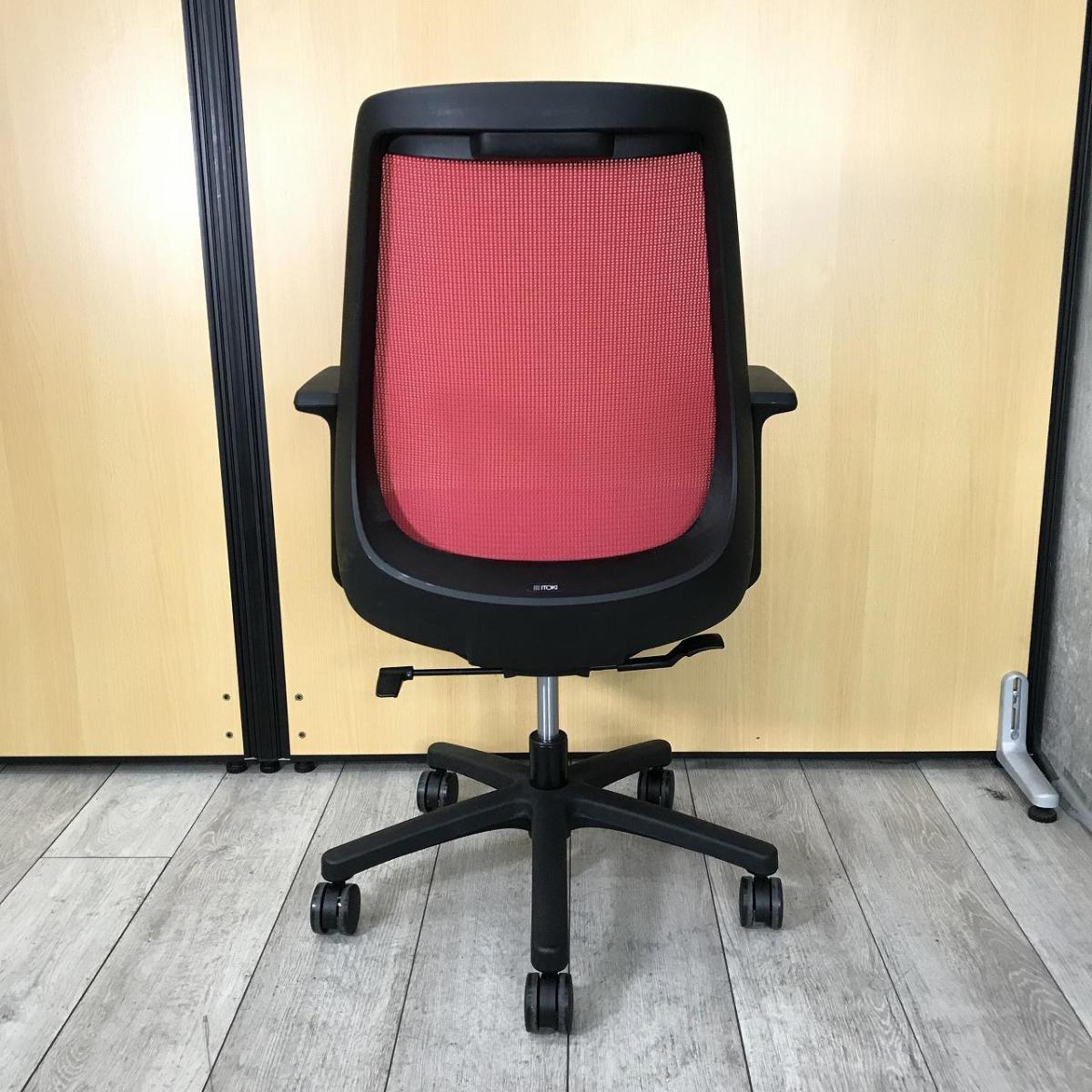 【座りやすくてコンパクト!肩回りが動かしやすい背面メッシュの人気チェア!】■イトーキ(ITOKI) ノナ(nona)チェア ハイバック 肘付き ■サークル肘 ■背面メッシュ ■ラズベリーレッド × ホワイトフレーム【K9】
