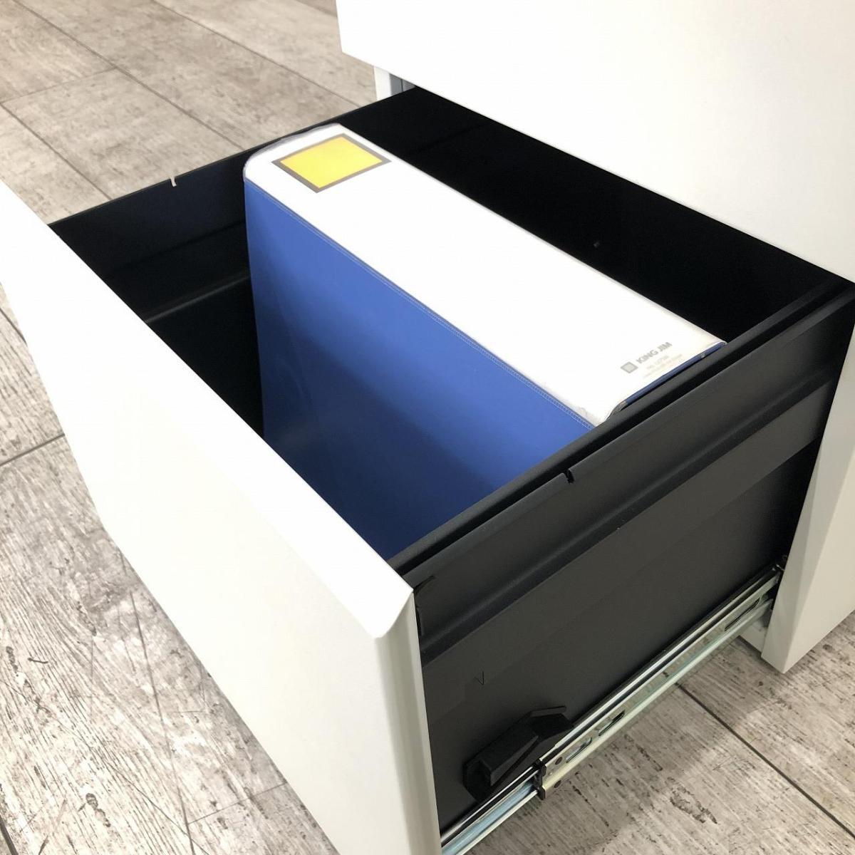 【洗練されたデザインの3段ワゴン!フリーアドレスデスクや平机の収納力アップに!】■スチールケース(Steelcase)製 3段ワゴン デスクインワゴン H620㎜ ■ホワイト ■シリンダー錠〈岐阜・愛知・三重・静岡・福井〉- 岐阜店