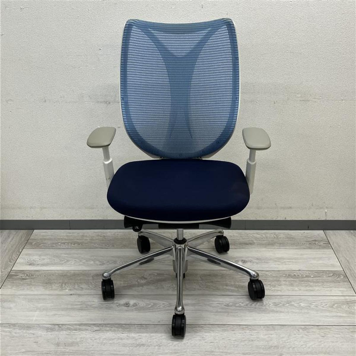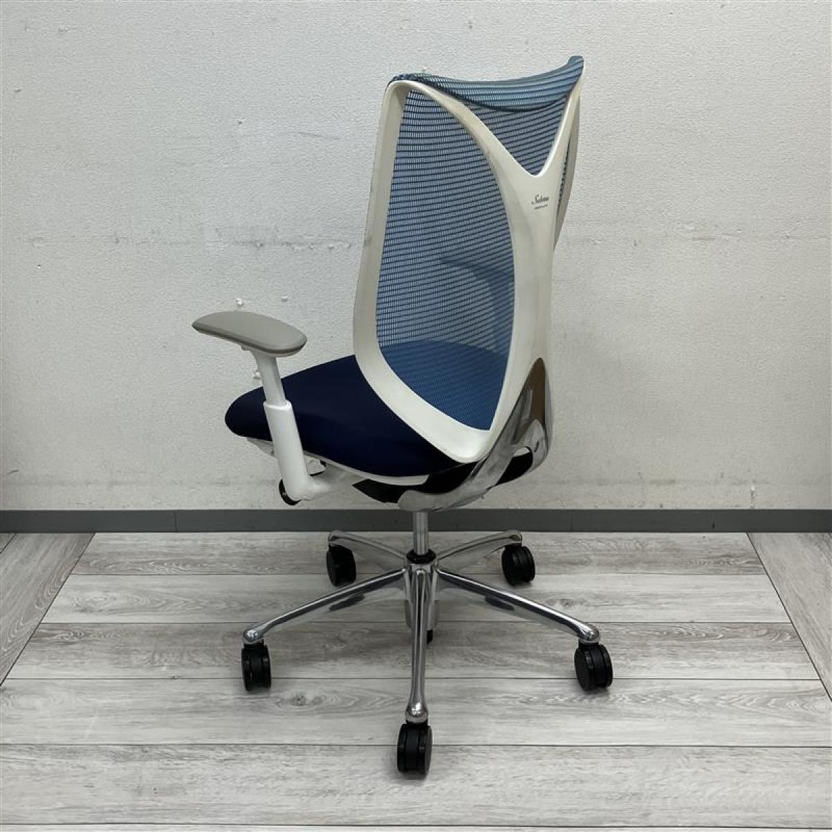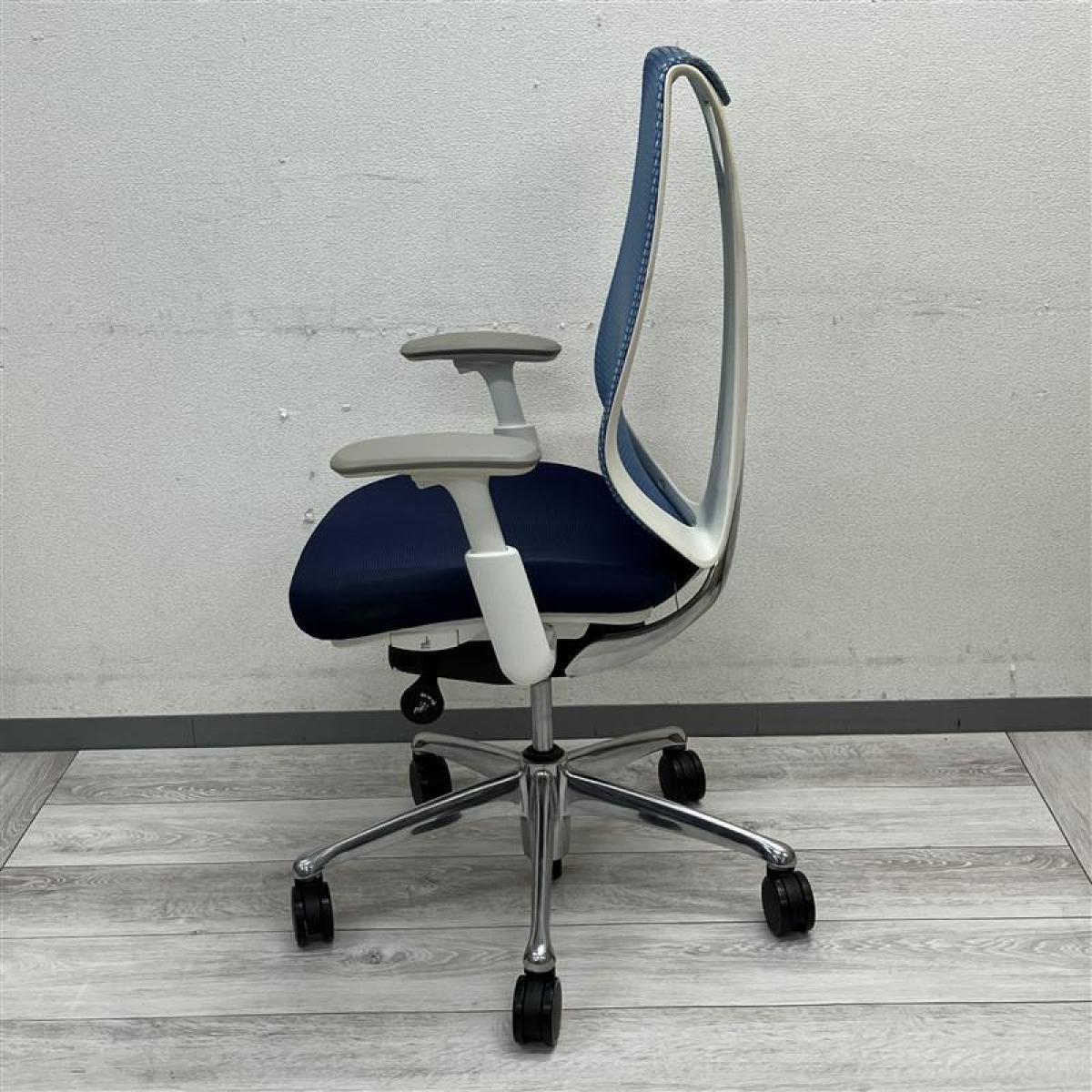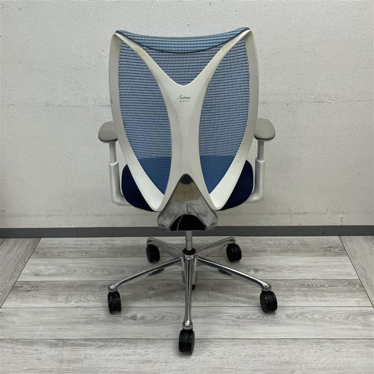 【在庫セール品】【定価約16万円】【前傾チルト付!流れるような美しいフォルムの最高級メッシュチェア!】■オカムラ(okamura)製 Sabrina(サブリナ) ハイバック 肘付き ■可動肘 ■背面メッシュ:アクアブルー/座面:ブルー×ホワイトフレーム【AD】