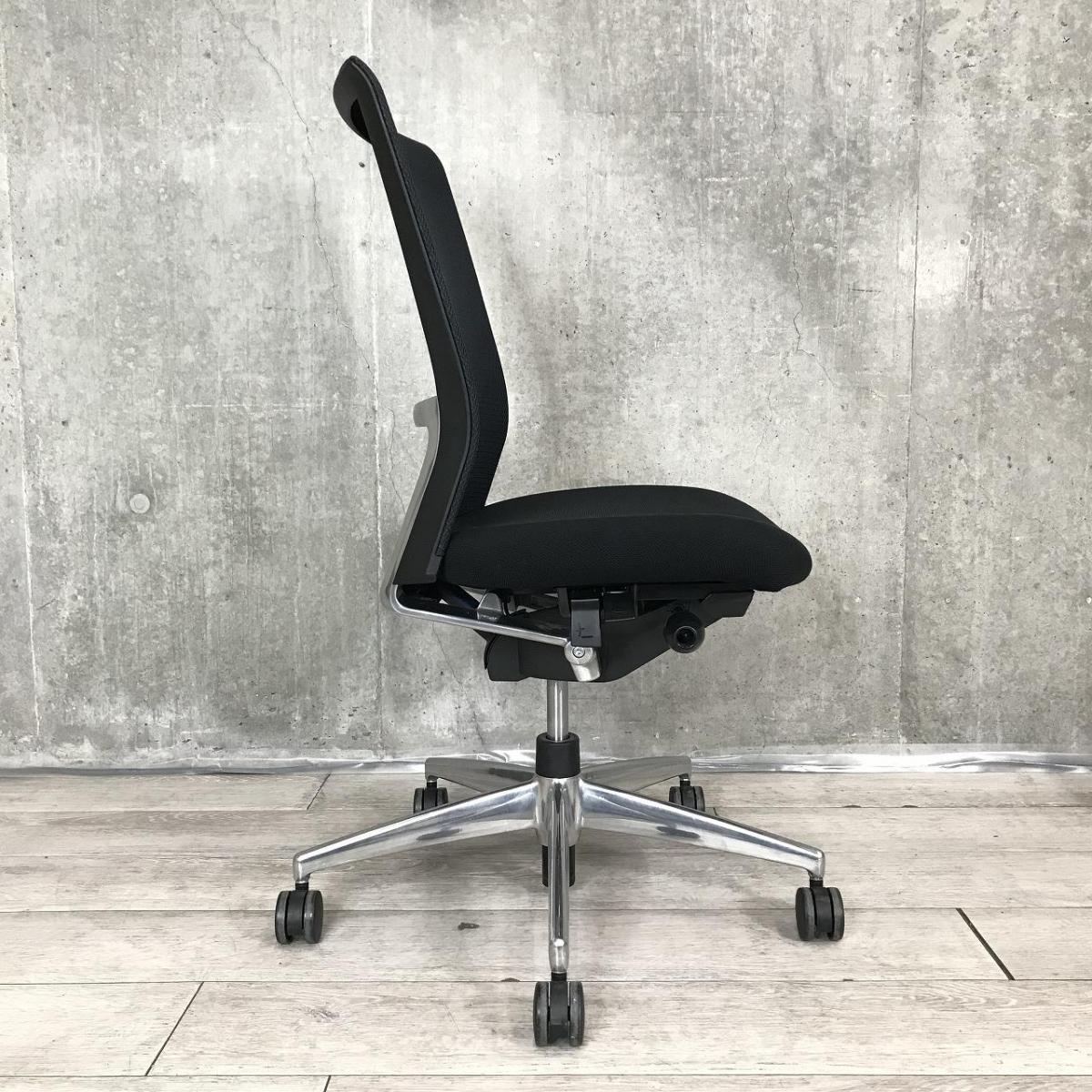 透明感のあるメッシュは背もたれ背面の中央に配したアルミフレームと相まって、