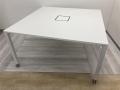 - 一部不具合あり天板歪み、アジャスター無し、キャスター使用不可ようなそのテーブルの本来の効用を果たすための機能以外の一部が使用不可な状態。(例、キャスターロッ ク機能使用不可、棚板無し等がある。)