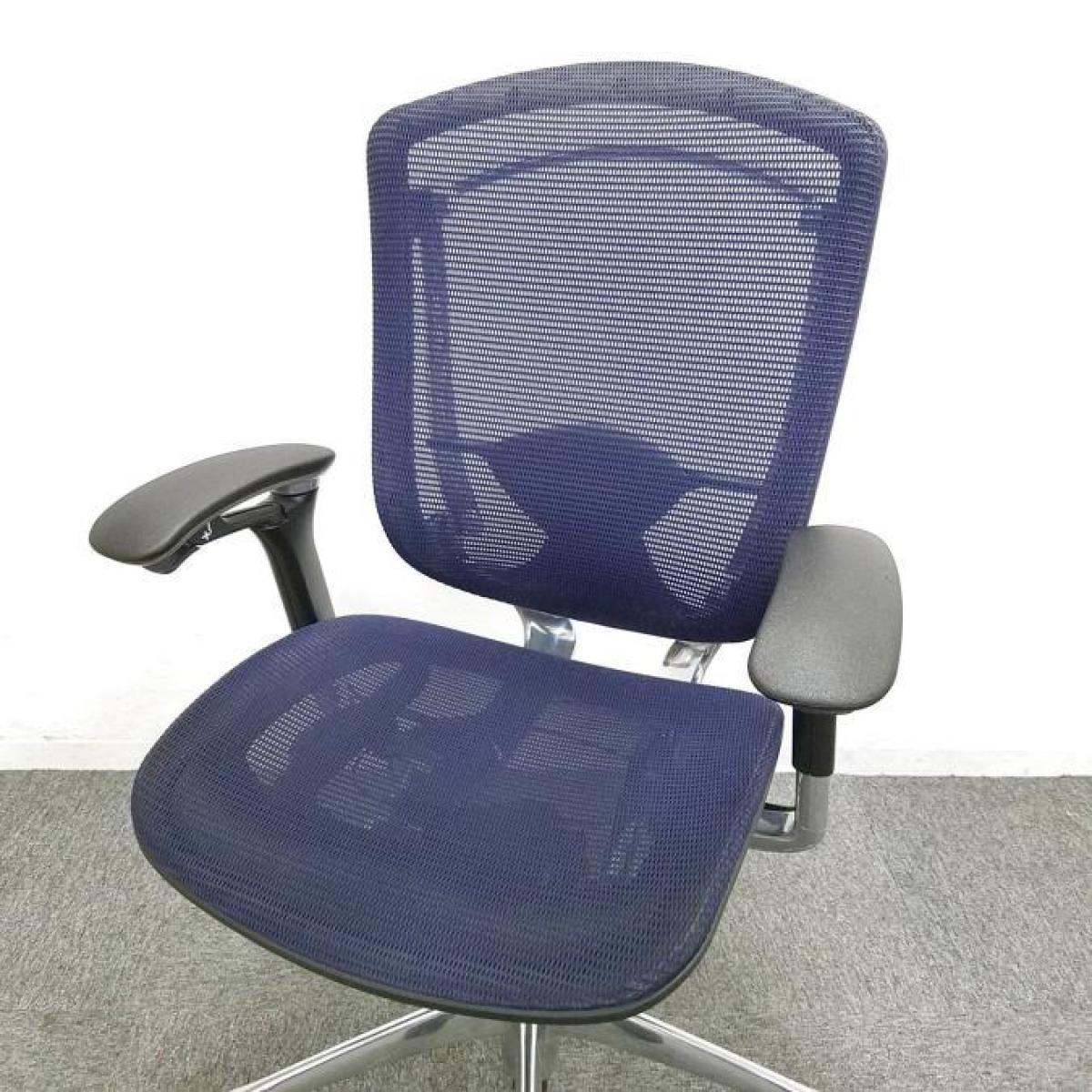 【オカムラ製の最高級チェアが残り1脚限りです!!】オフィスバスターズ 東大阪店 オカムラ製 コンテッサ シリーズ ダークブルー アジャストアーム※可動肘 背/座面メッシュ ランバー 世界で認められた革新的タスクチェア!人間工学に基づいた快適な座り心地を実現! 肘付きハイバックチェア!! 中古 外部倉庫品
