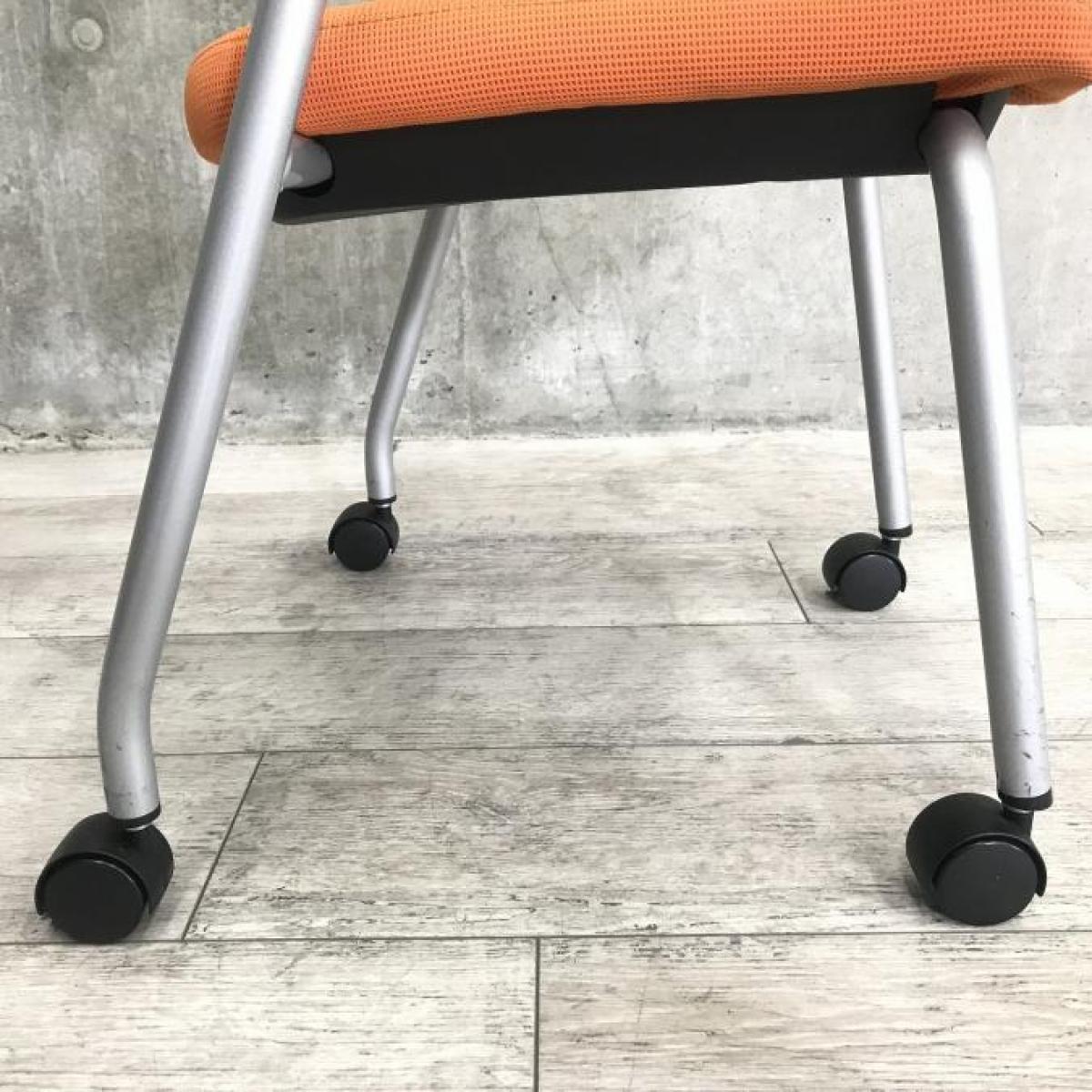 【シンプルスマートなスタッキングチェア!】■コクヨ(KOKUYO) プロッティ(Protty)チェア スタッキングチェア ミーティングチェア ■肘付き キャスター付き ■オレンジ【2505】弊社使用欄【A01018053】