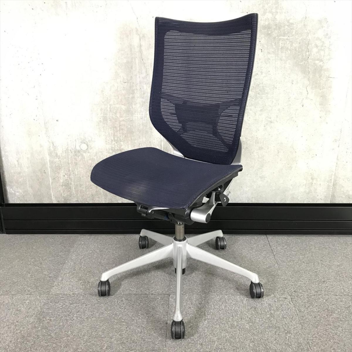 【在庫入替セール品】希少/オススメ/大人気 オカムラ製 バロンチェア(Baron) ハイバック 肘無し ■背/座面メッシュ ■ミディアムブルー