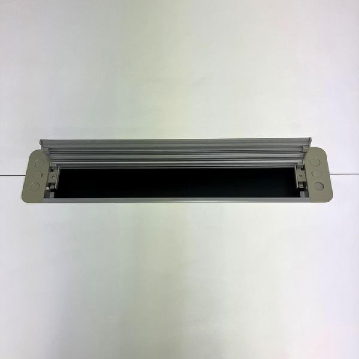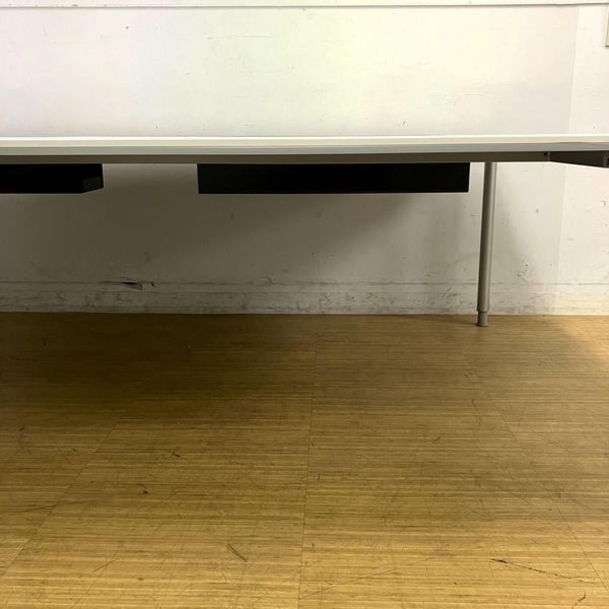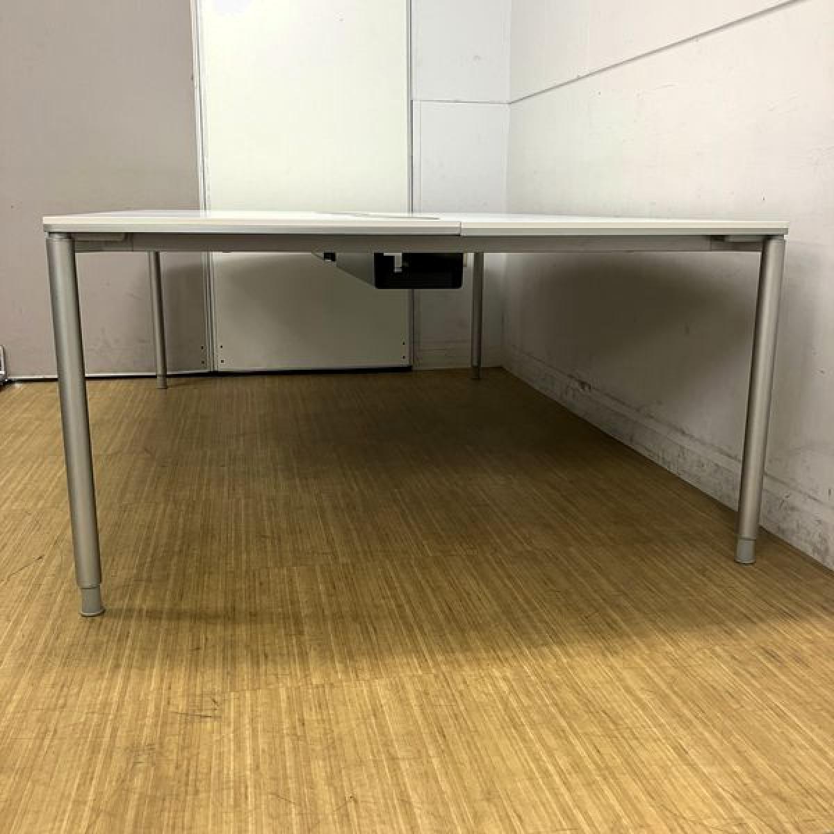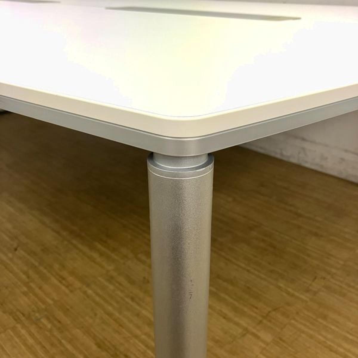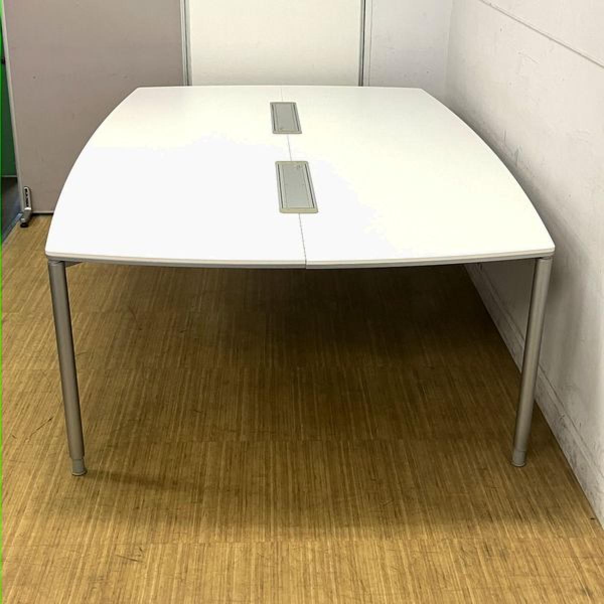 【在庫入替セール】オカムラ アプションフリー 会議用大型テーブル(W2400天板×2枚構成) ホワイト天板×シルバー脚 配線付き アジャスター脚 ※長方形ではなく若干舟形のようになっています- 名古屋千種店