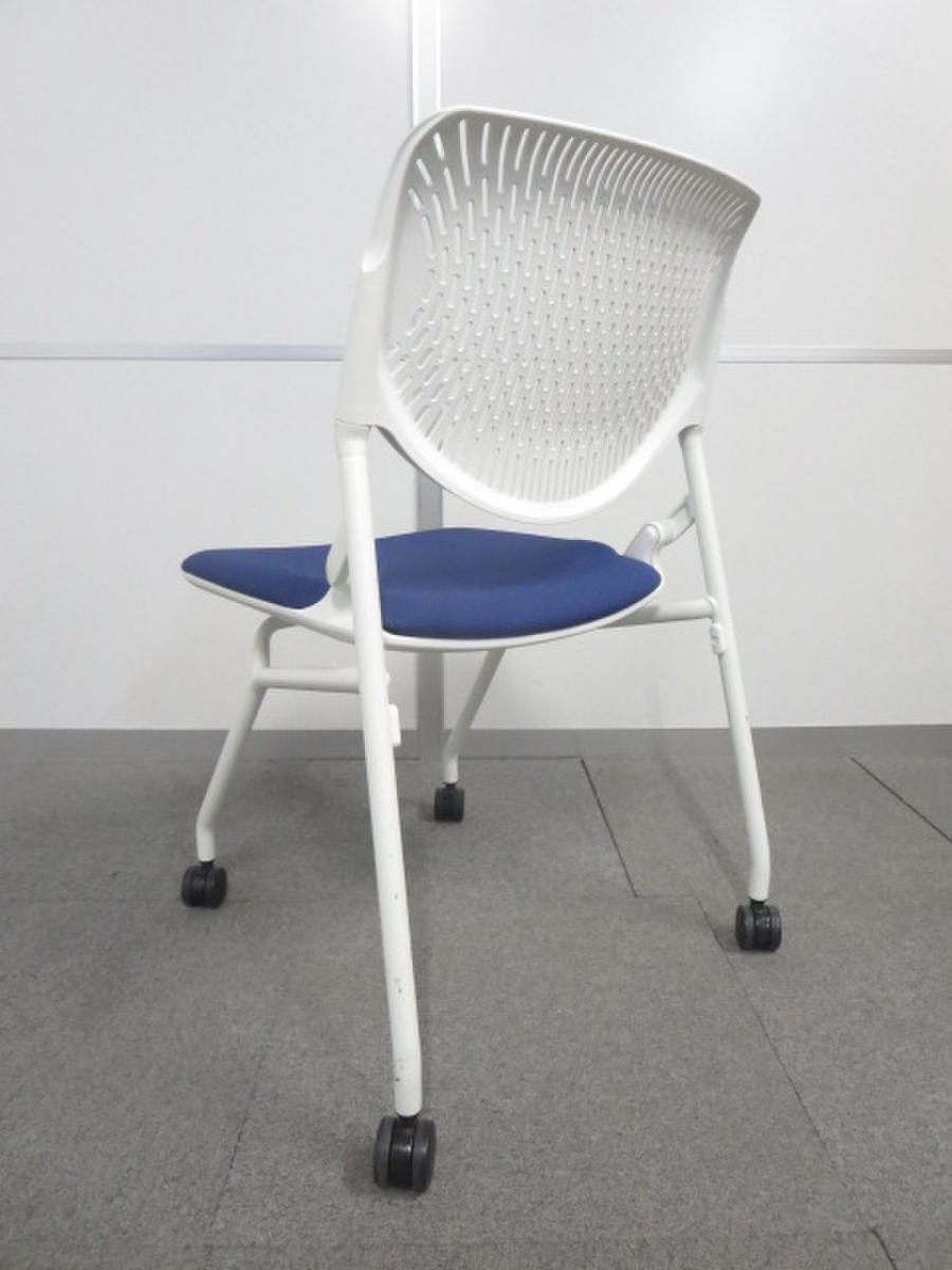 【さまざまな場面で活躍するミーティングチェア!】■オカムラ(okamura)製 ルナ(Runa)チェア ネスティングチェア ■背面樹脂メッシュ:ホワイト / 座面:ネイビーブルー ■キャスター付き【使わない時は平行に重ねて収納!】