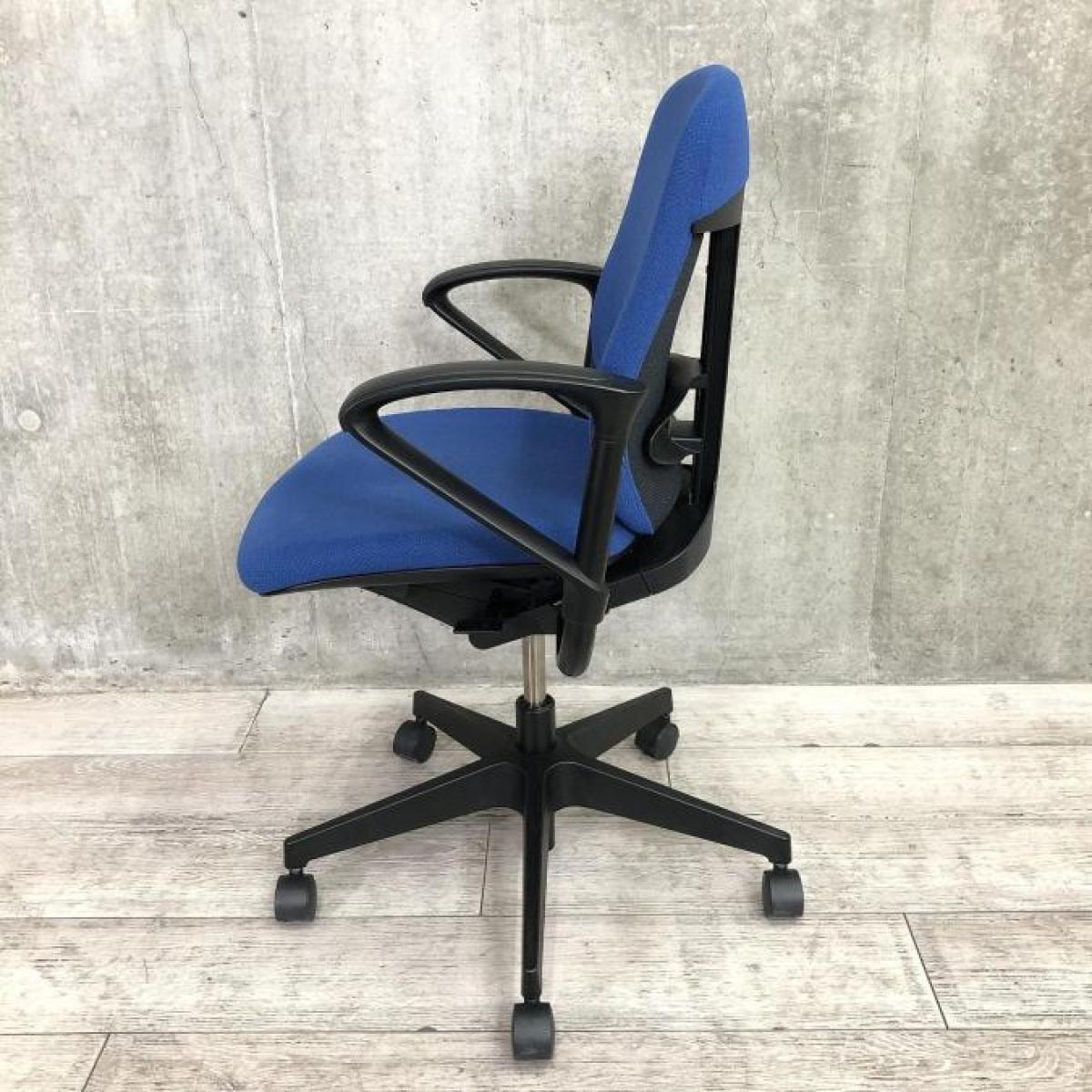 【一人ひとりにマッチする座り心地!姿勢の変化にフレキシブルに対応!】■イトーキ(ITOKI)製 プラオチェア 肘付 ローバック ■サークル肘 ■背面ストロングブルー×座面ブラック オフィスバスターズ 東大阪店【K11】