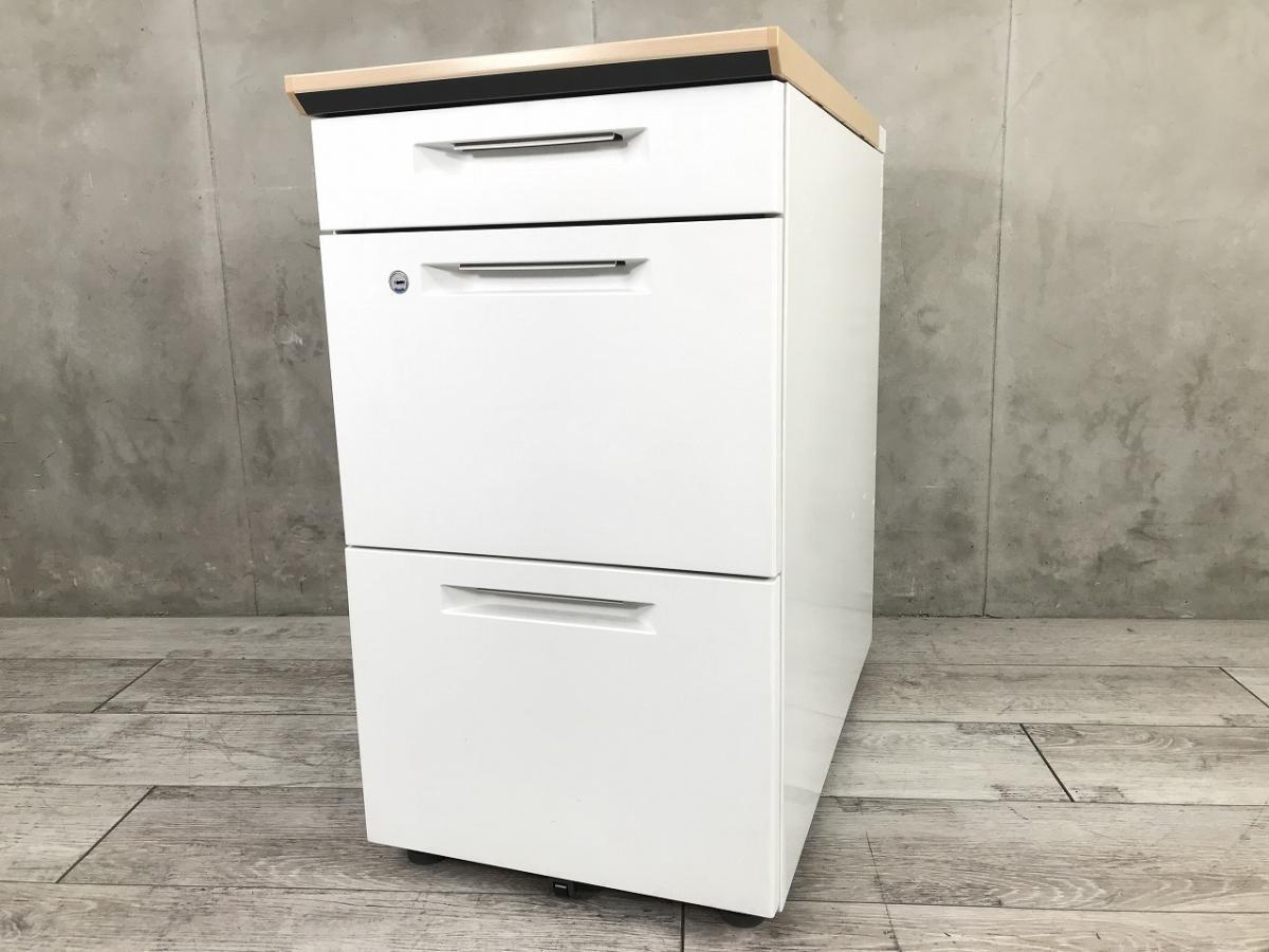 【収納と作業スペースを同時に確保!フリアドデスクや平机のお供に!】■コクヨ(KOKUYO)製 アイエス(iS)シリーズ 3段脇机 ■W400×D700×H720㎜ ■本体:ホワイト 天板:木目ナチュラル ■シリンダー錠