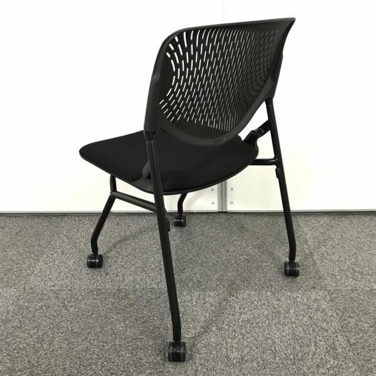【スタイリッシュなデザインで座りやすい!】■オカムラ(okamura)製 ルナ(Runa)チェア ネスティングチェア 会議用 キャスター付 ■背面樹脂メッシュ ■ブラック 【フレキシブルに使える!便利なネスティングチェア!】- 春日部・越谷店