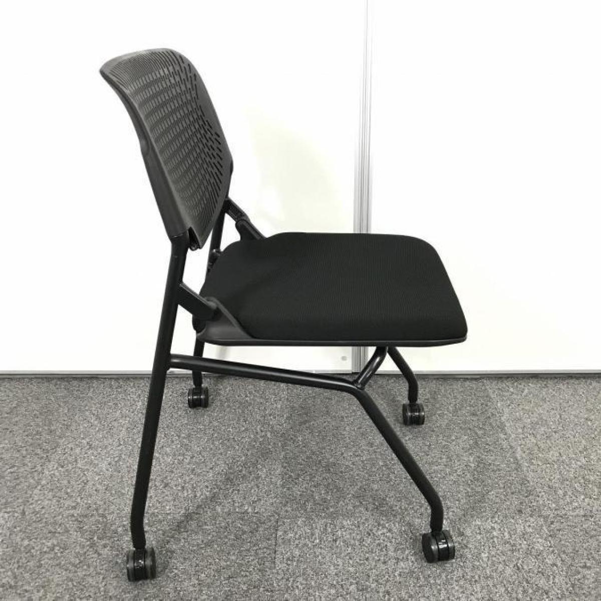 【関東倉庫在庫品】【フレキシブルに使える!便利なネスティングチェア!】■オカムラ(okamura) ルナチェア(RUNA) ネスティングチェア ミーティングチェア 肘無し ■キャスター付 ■背面樹脂メッシュ(ヌードタイプ) ■ブラック 【弊社使用欄:A01015956】【ECBMC】