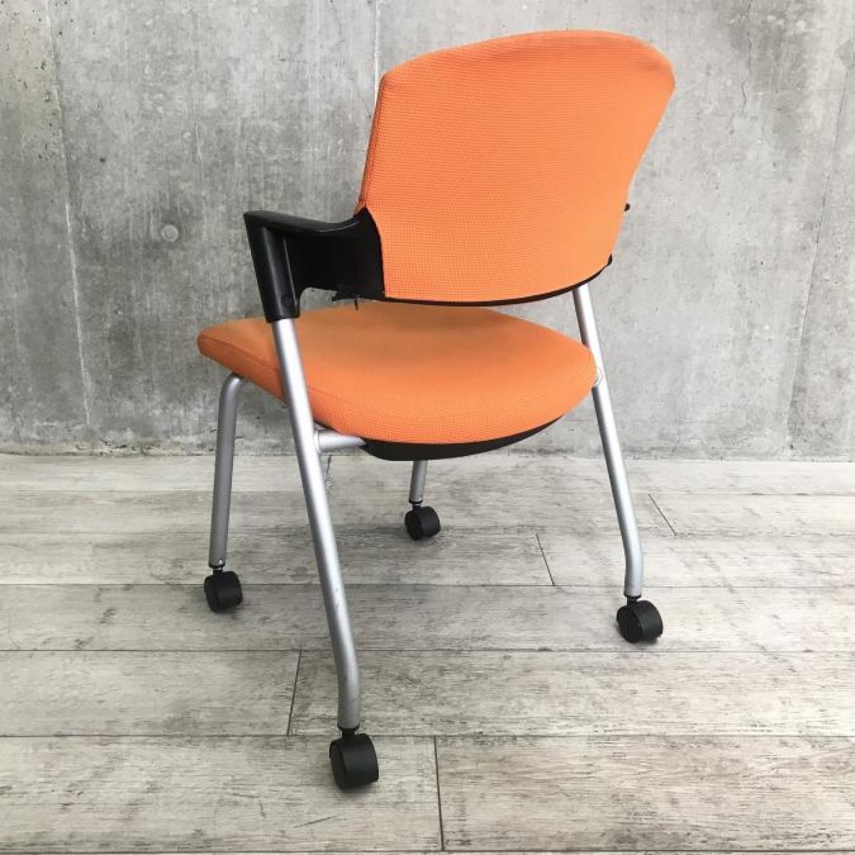 【シンプルスマートなスタッキングチェア!】■コクヨ(KOKUYO) プロッティ(Protty)チェア スタッキングチェア ミーティングチェア ■肘付き キャスター付き ■オレンジ【2505】弊社使用欄【A01018053】