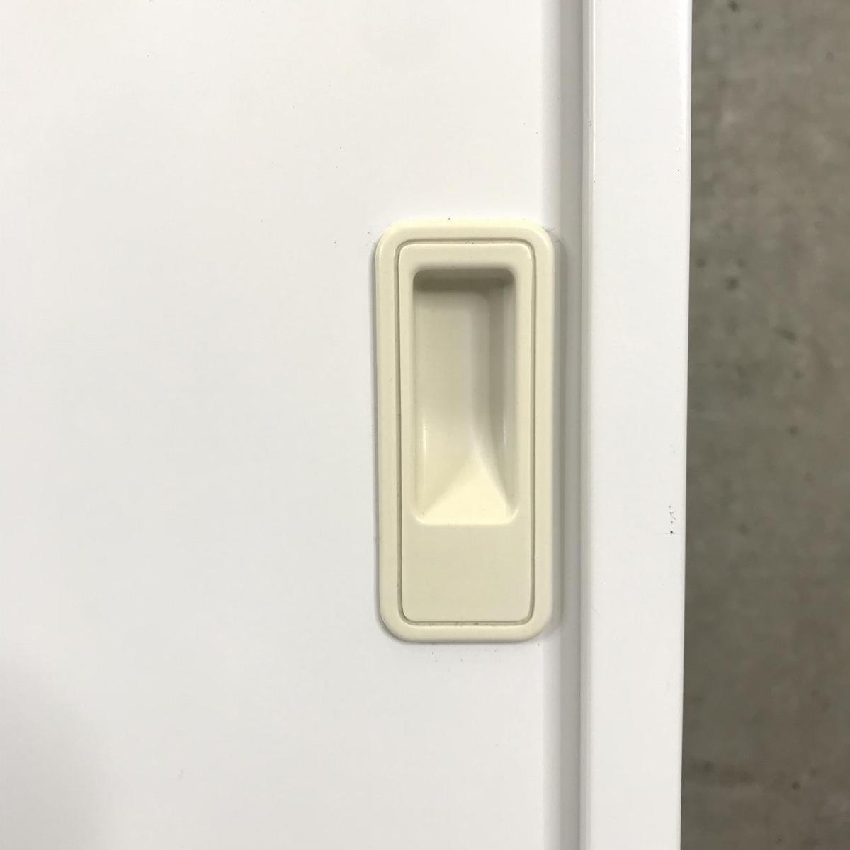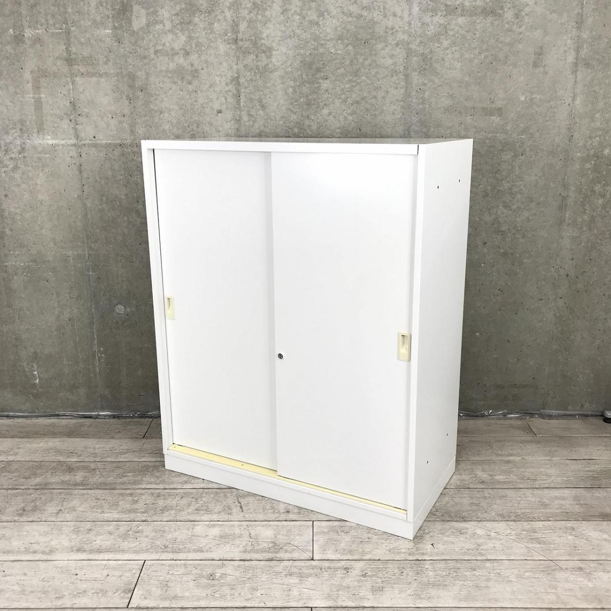【手狭オフィスで大活躍!導線を確保できる引き違い戸のキャビネット!】■ウチダ(UCHIDA)製 BEストレージシリーズ 引き違い書庫 2枚扉 ■シリンダー錠 ■ホワイト ※日焼け有【弊社使用欄:A01019161】サーキュラーバリューCO2削減量の算出について