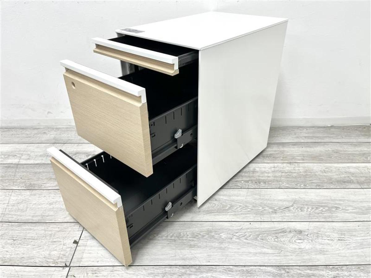 【セット商品】【定価約17万円】【お洒落なナチュラルカラーのワゴンと平机のセット!】■オカムラ(okamura) アドバンスシリーズ 平机 幅1200㎜ ■天板:ナチュラル/本体:ホワイト【※右側引き出し無しタイプ】 ■オカムラ(okamura)プロステージシリーズ 3段ワゴン ■色:本体/ホワイト 正面/木目ナチュラル ■シリンダー錠 ※セット商品のため配送料要相談サーキュラーバリューCO2削減量の算出について