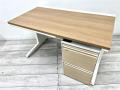 【定価約9万円】【ワイヤリング機能が充実!清潔感のあるホワイトカラーにおしゃれなナチュラル天板の平机!】■オカムラ(okamura)製 アドバンスシリーズ(ADVANCE) 平机 引き出し付き 幅1200㎜ ■天板:ナチュラル / 本体:ホワイト