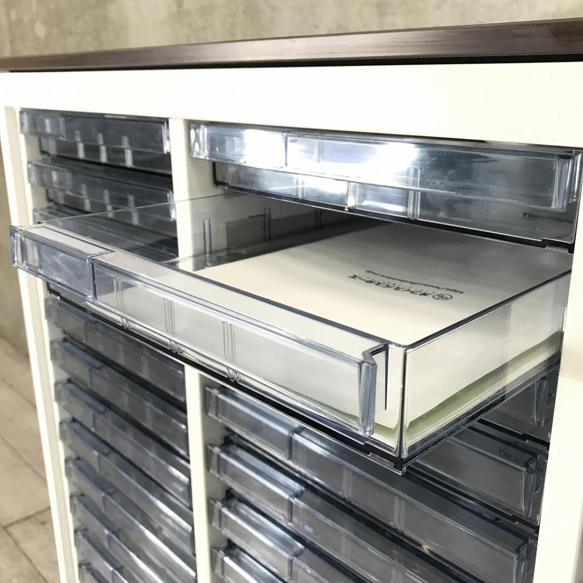 【書類・備品整理の必需品!】【珍しいクリトレが入荷!3列×浅型24段】■オカムラ(okamura)製 クリスタルトレー ローキャビネット 3列×浅型24段 ■天板:木目ダーク/ホワイト【弊社使用欄:A01020400】【KN】- 在庫数