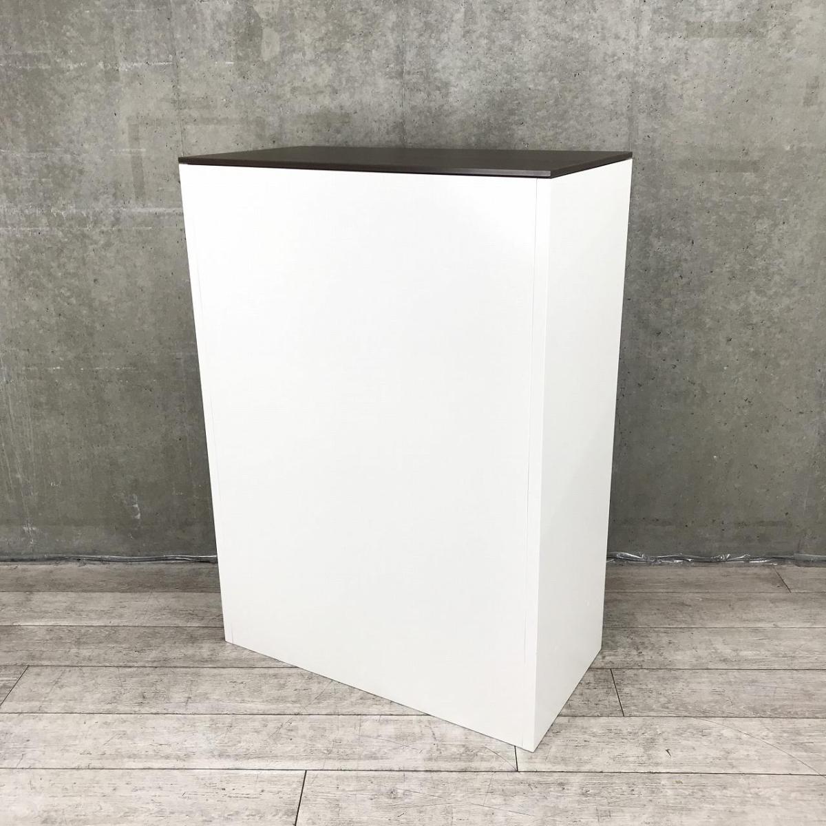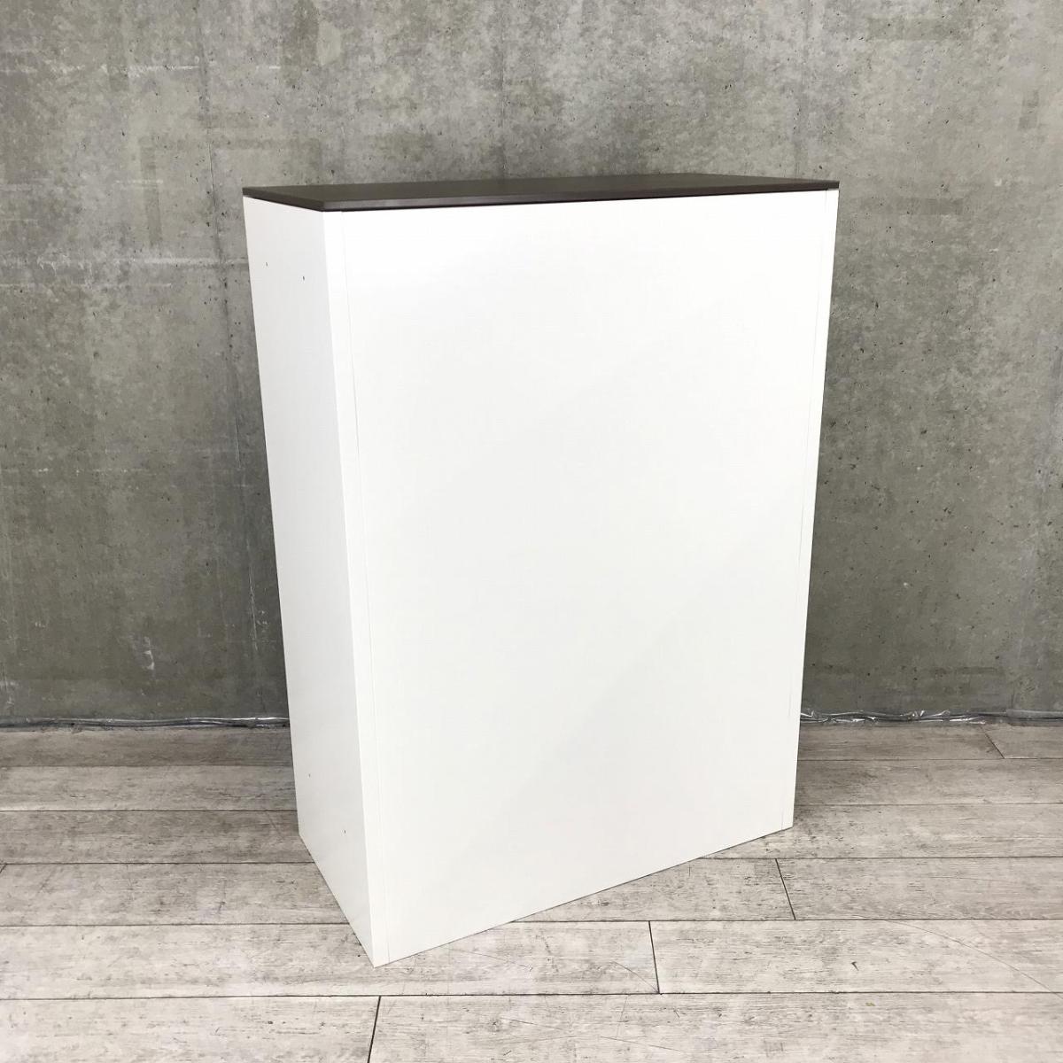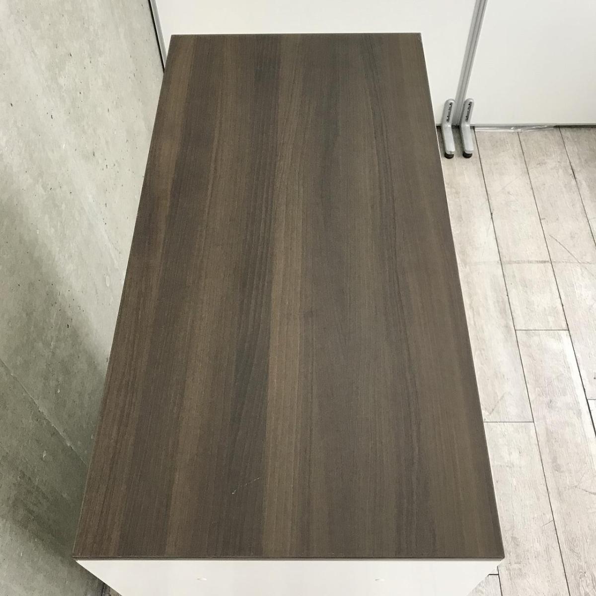 明るい雰囲気でおしゃれなホワイトカラー、天板は木目調ダークカラーでおしゃれ!
