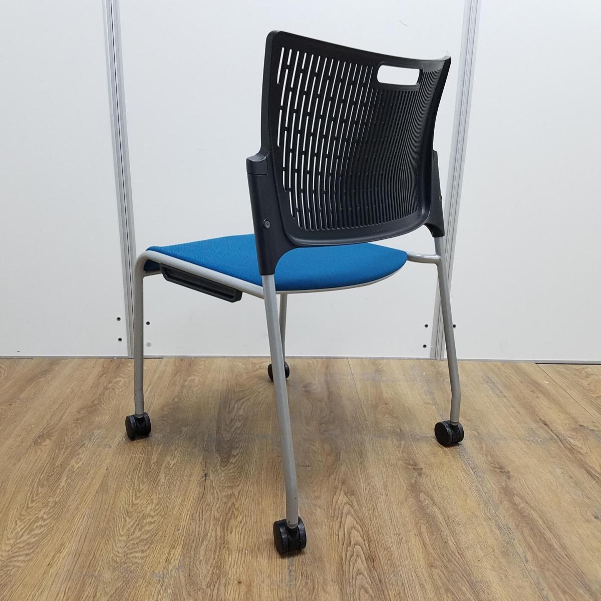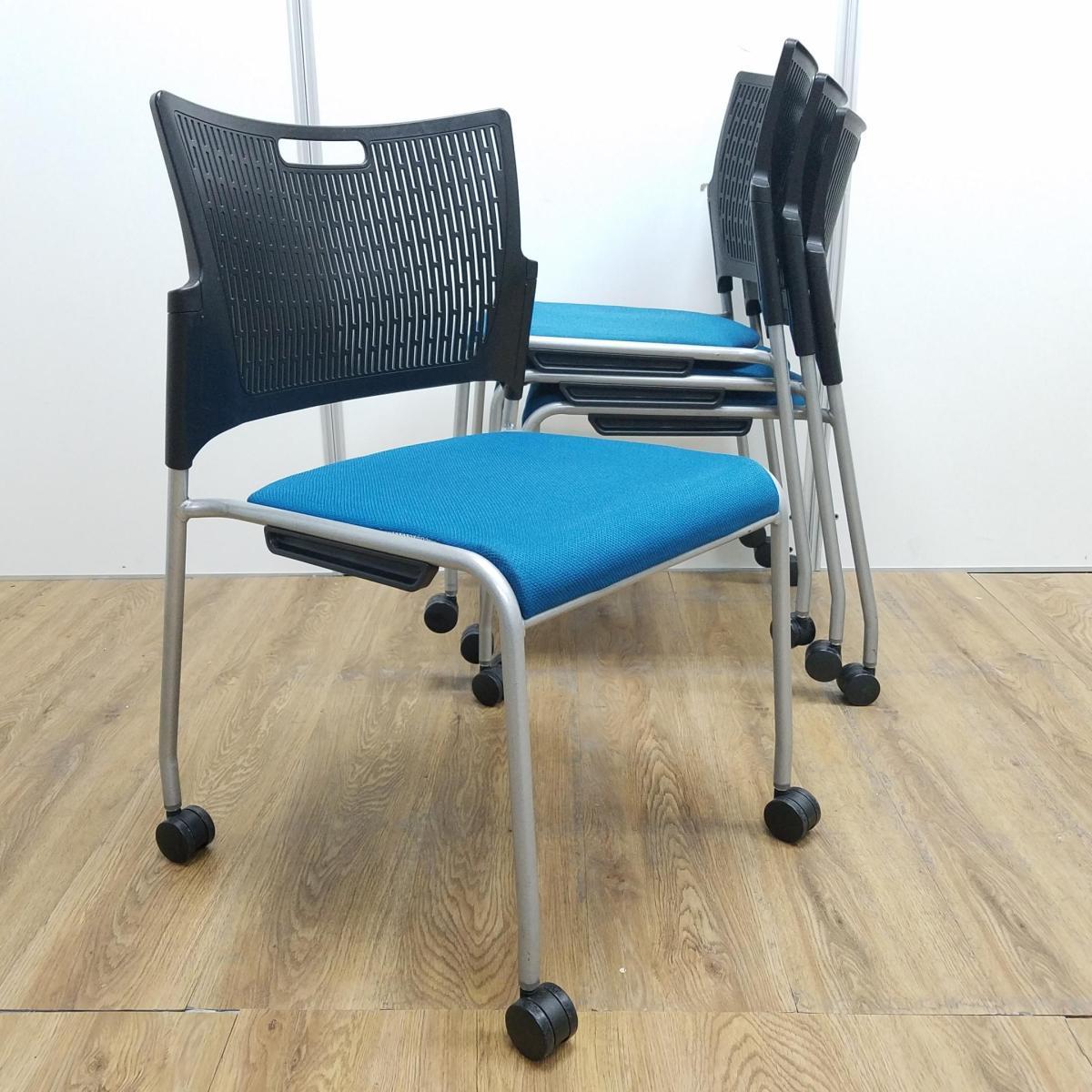 【4脚セットで大ロット商品!】■オカムラ(okamura) レーテシリーズ ■ターコイズ 背もたれブラック樹脂 ■キャスター付 スタッキングチェア ミーティングチェア4脚セット 単品買いよりも少しお安く!【山盛り在庫のチョモランマ!】在庫がある店舗一覧
