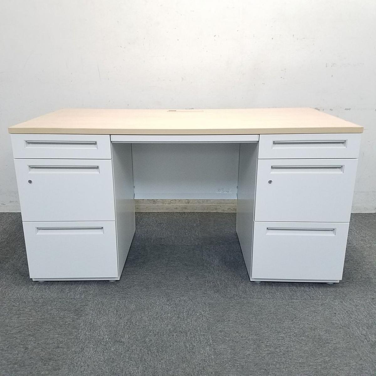 【2台入荷!】■ウチダ(UCHIDA)製 スカエナ(SCAENA)シリーズ 両袖机 W1400㎜ 配線:Kタイプ ■天板:木目ナチュラル × 本体ホワイト【2507】【A01026898】