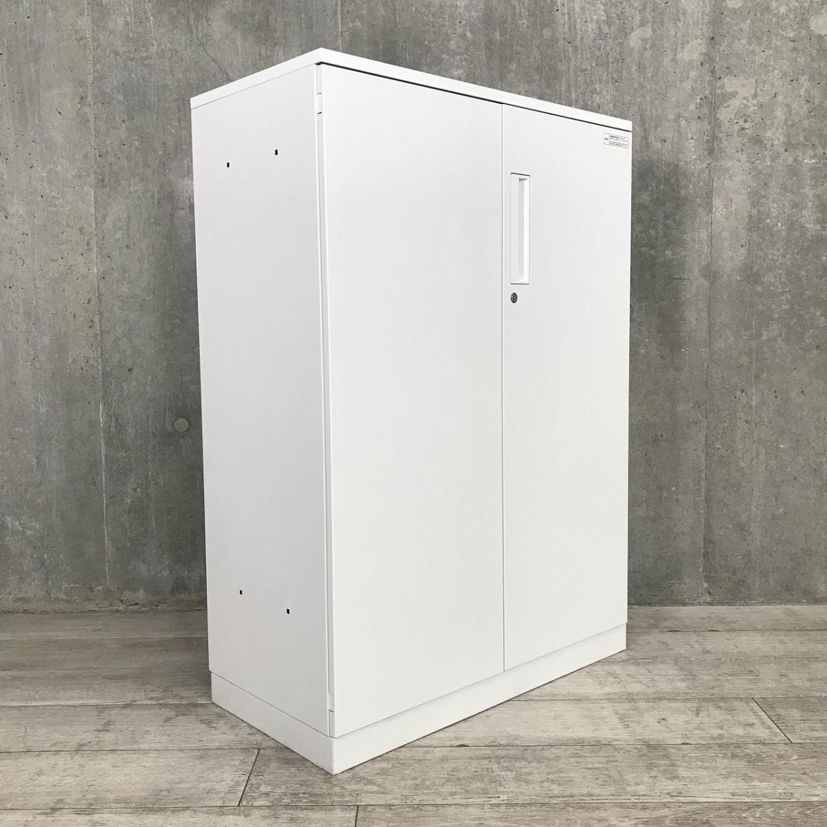【収納物がひとめで分かる両開き戸タイプ!】■コクヨ(KOKUYO)製 エディア(EDIA)シリーズ 両開き書庫 ローキャビネット H1130㎜ ■天板・ベース付 ■ホワイト ■シリンダー錠【IB】