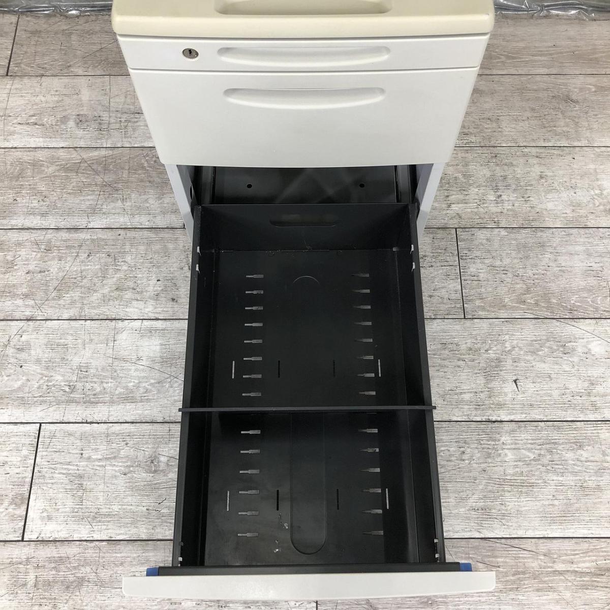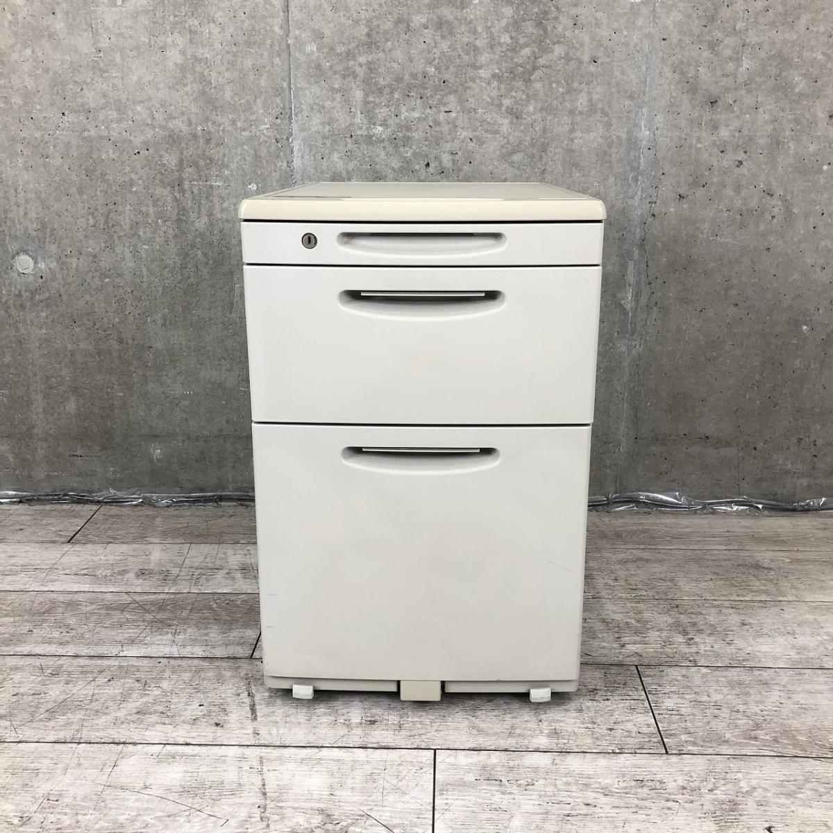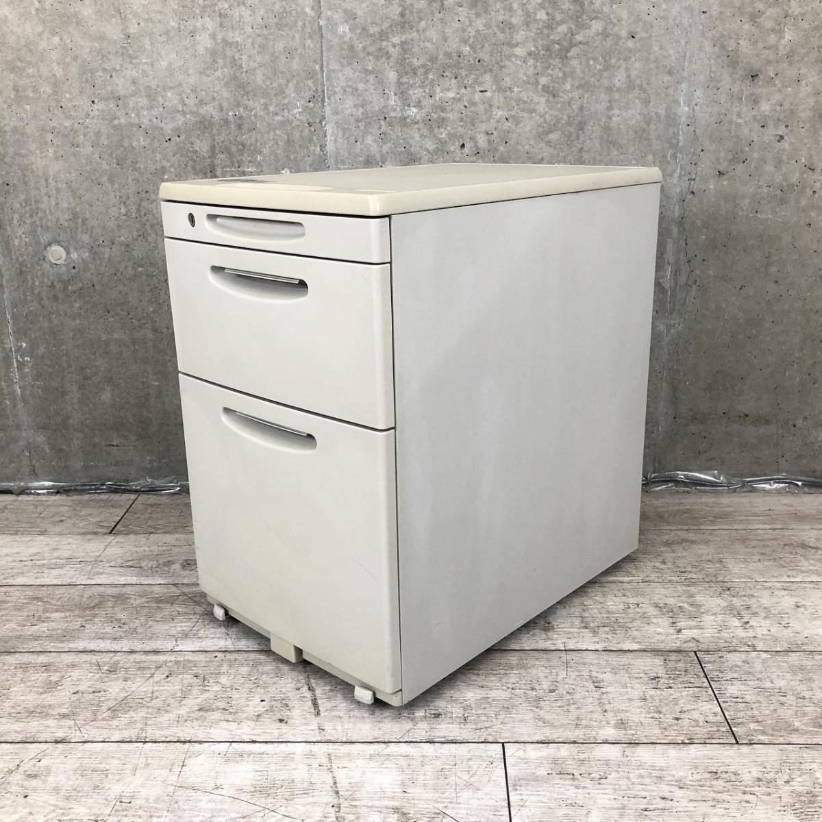 【大人気オカムラ製3段デスクワゴン!天板の把手とキャスターで移動がらくらく!デスク下に置いて収納力アップ!】■オカムラ(okamura)製 SDシリーズ 3段ワゴン デスクインワゴン H610㎜ ■ニューグレー ■シリンダー錠