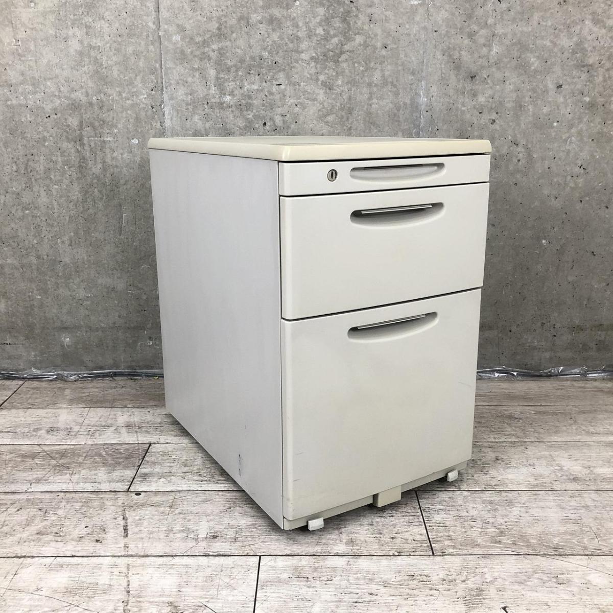 【定価約7万円】【天板の把手とキャスターで移動がらくらく!シンプルでスタンダードな3段ワゴン!】■オカムラ(okamura)製 SDシリーズ 3段ワゴン デスクインワゴン H610mm ■ニューグレー ■シリンダー錠