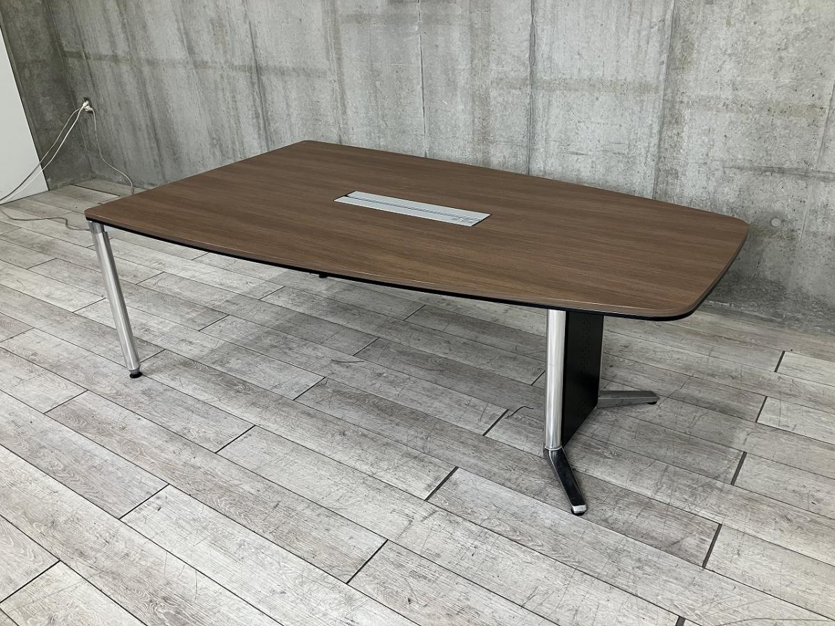 【高級溢れる大型テーブル!】【横幅2100mmタイプで6~8名様のご使用にオススメ!】■オカムラ(okamura)製 ミーティングテーブル 会議用 大型 ■木目ナチュラル ■配線口 ■片側脚板付き- 在庫数