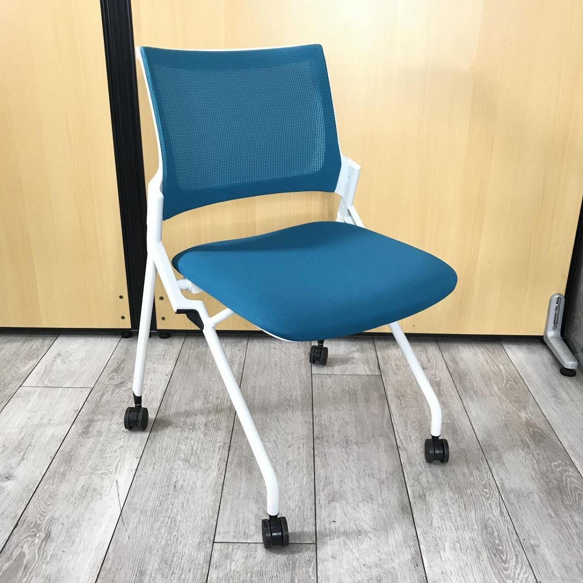 【オシャンティーなデザインで確かな座り心地!】■イトーキ モノンシリーズ ネスティングチェア ストロングブルー メッシュバック ■キャスター付で移動がラクラク!【ITOKI Monon】- 川崎店