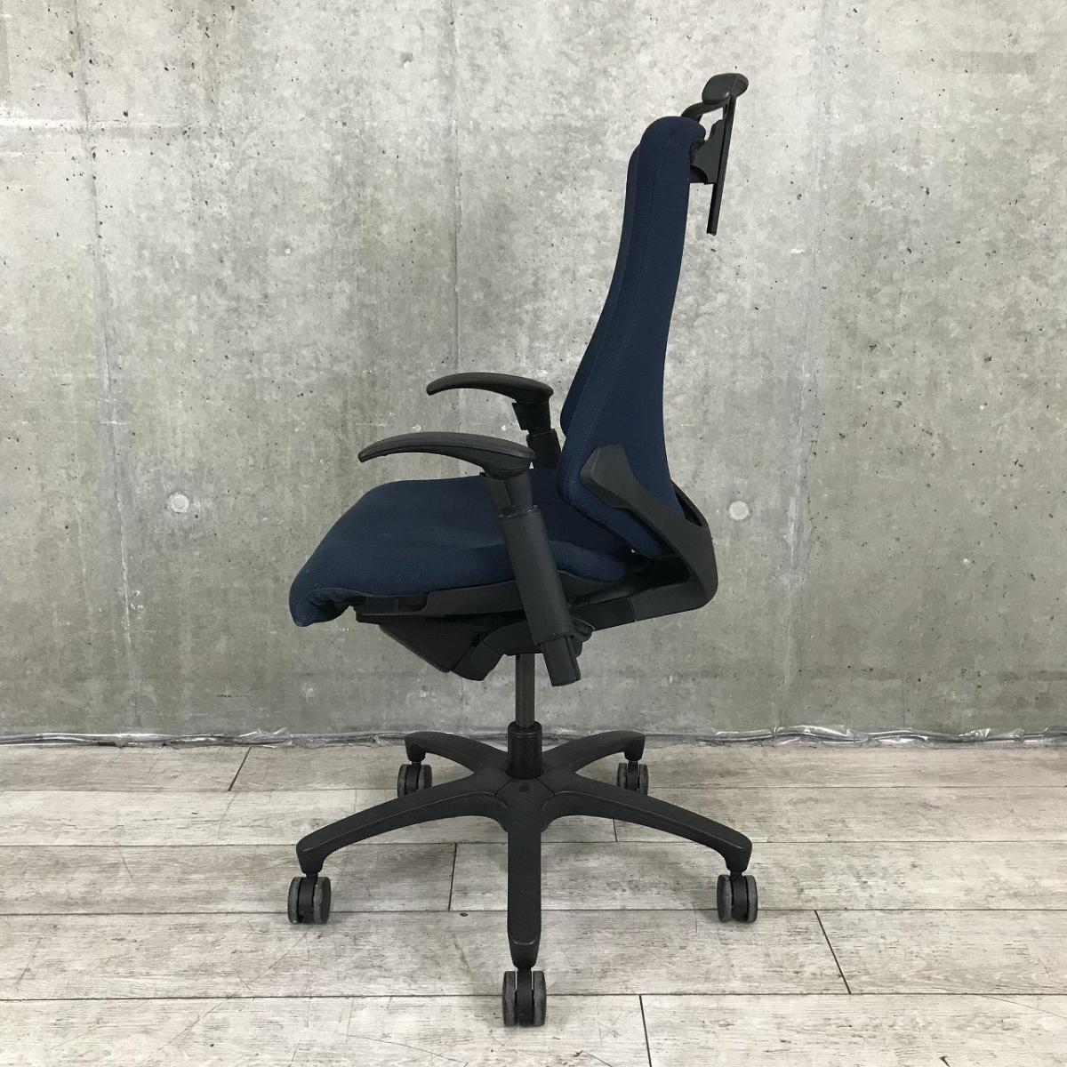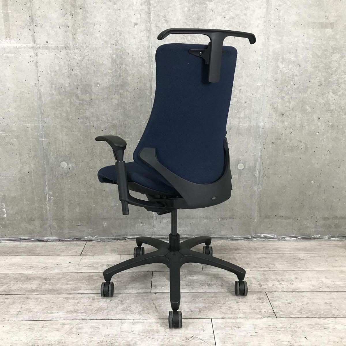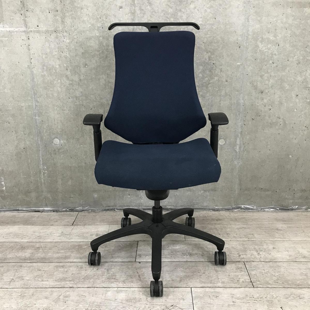 【包み込まれるフィット感!】 ■イトーキ製 エフチェア 肘付 ネイビーブルー ■デスクワークの疲労を軽減!